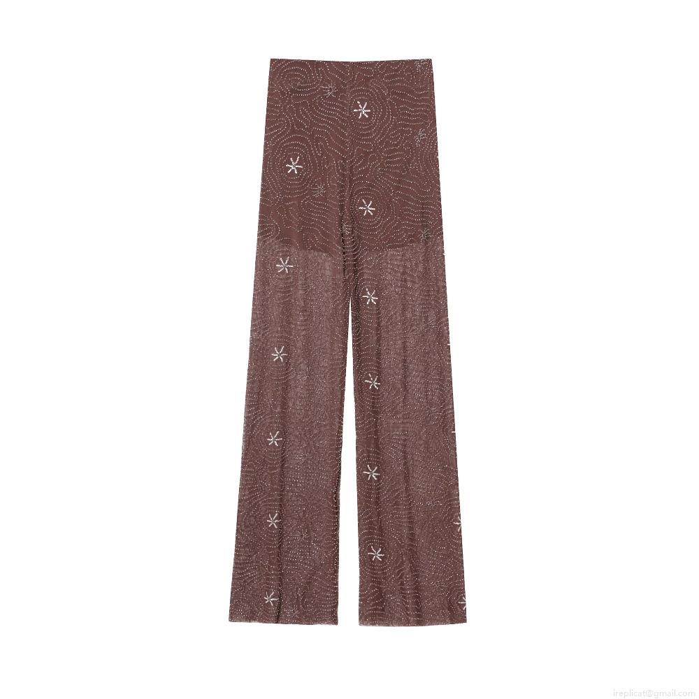 Women's High Waist Sequin Mesh Pants Elegant Beaded Sheer Wide Leg Trousers Coffee Brown Embroidery For Party Night Club Vacation