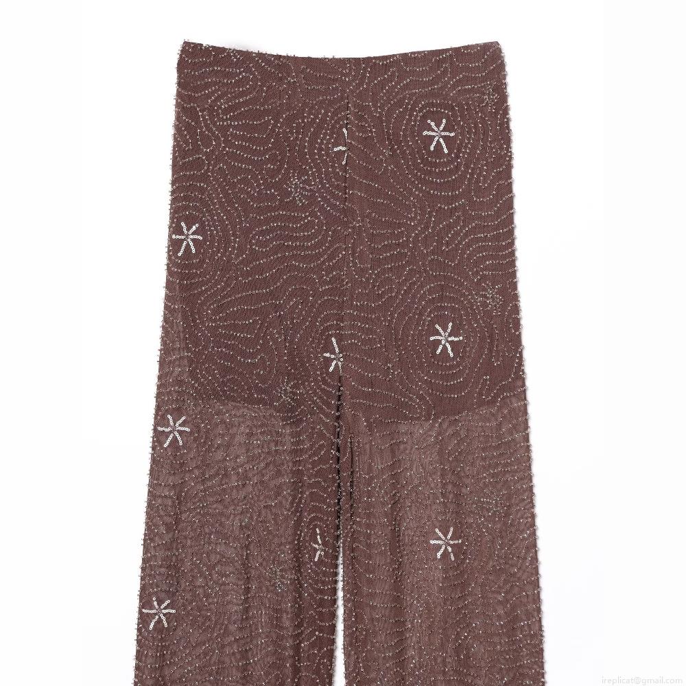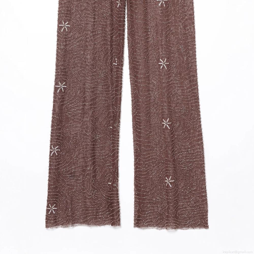 • Women's High Waist Sequin Mesh Pants Elegant Beaded Sheer Wide Leg Trousers Coffee Brown Embroidery For Party Night Club Vacation