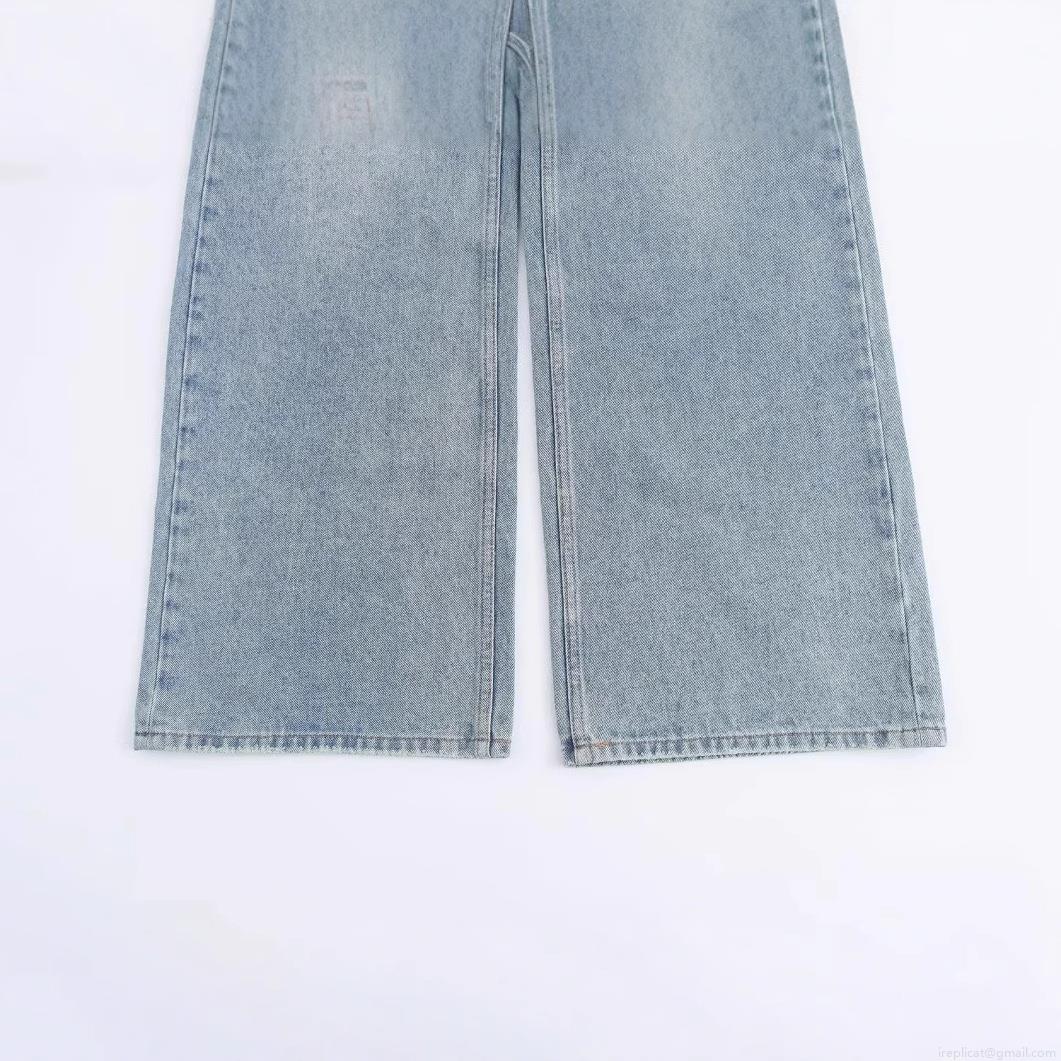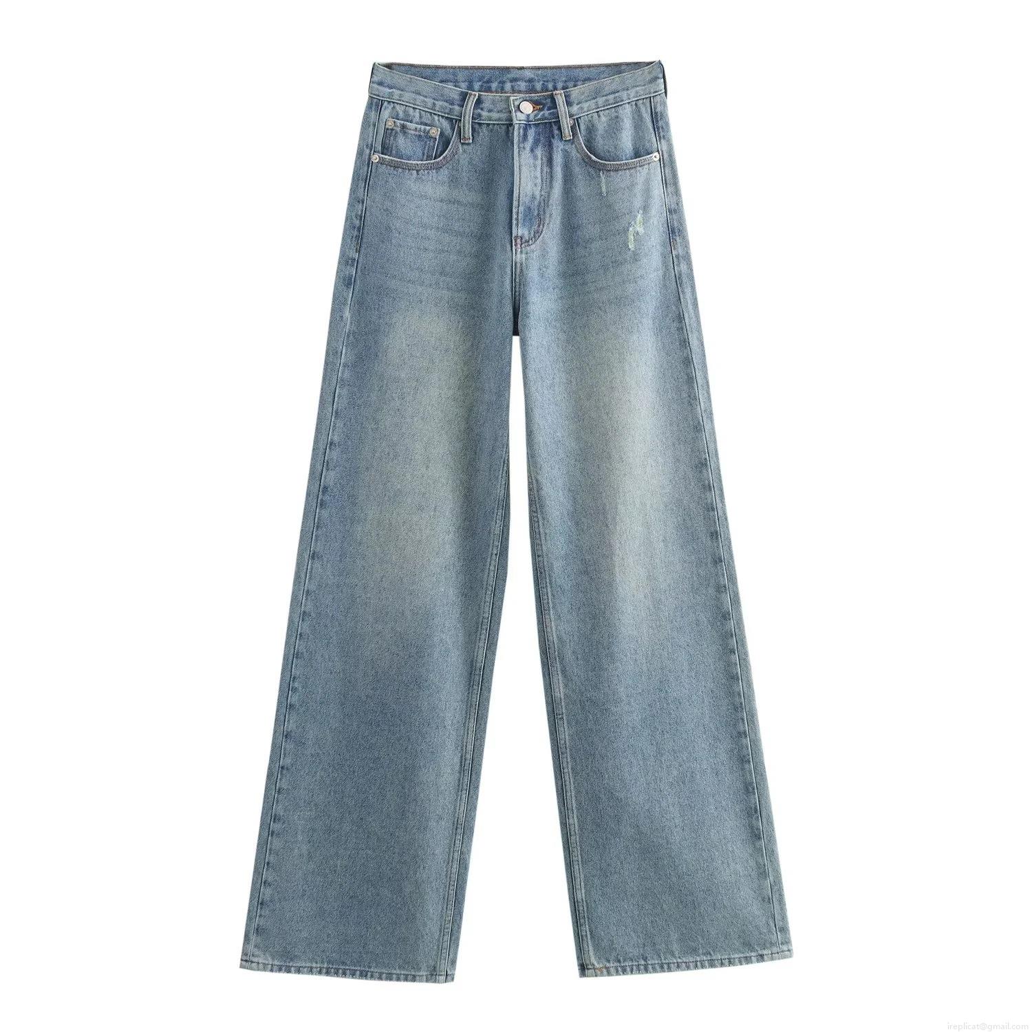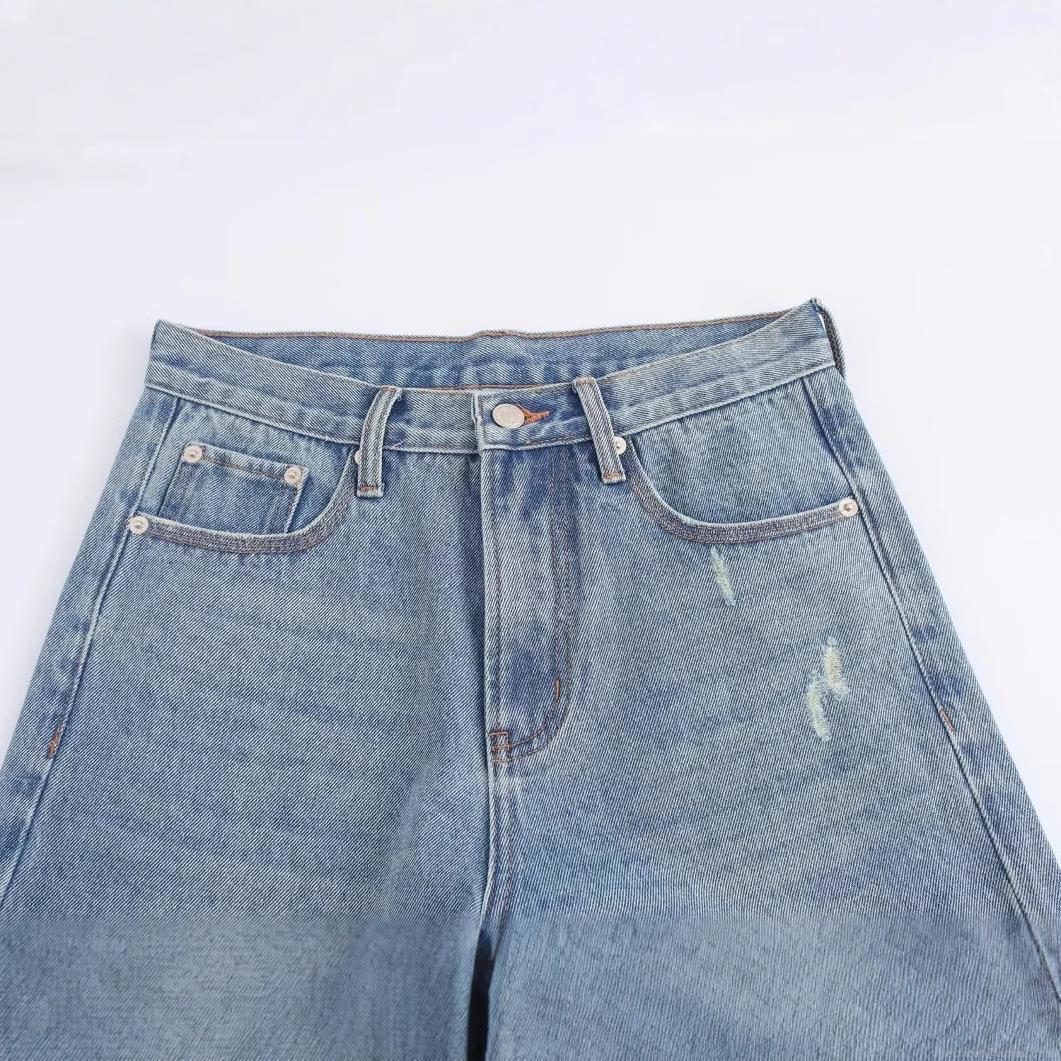 Solid Color, Hole, Wide-leg, High-waisted, Washing And Whitening, Nostalgic Water Wash