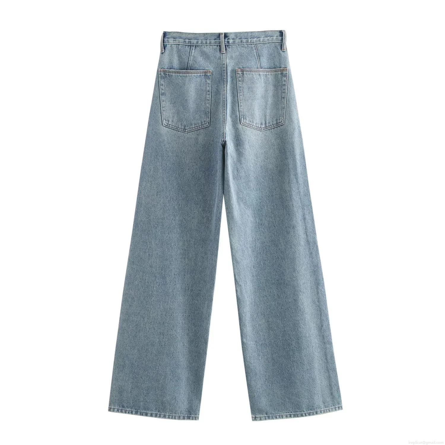 • Women's High Waist Wide Leg Jeans Light Blue Washed Denim Pants Ripped Distressed Straight Trousers For Casual Streetwear Vintage Style