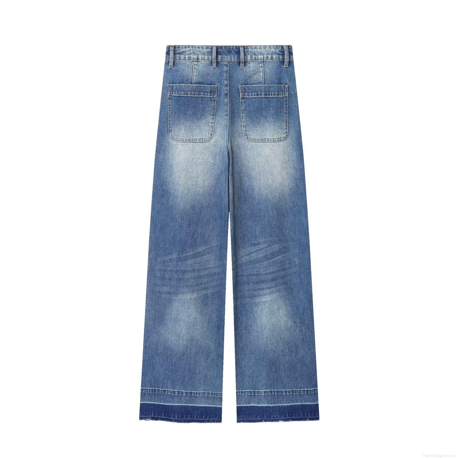 Metal Buttons, Ykk Zippers, Front Large Patch Pocket, Patchwork Dark Blue Trouser Hem