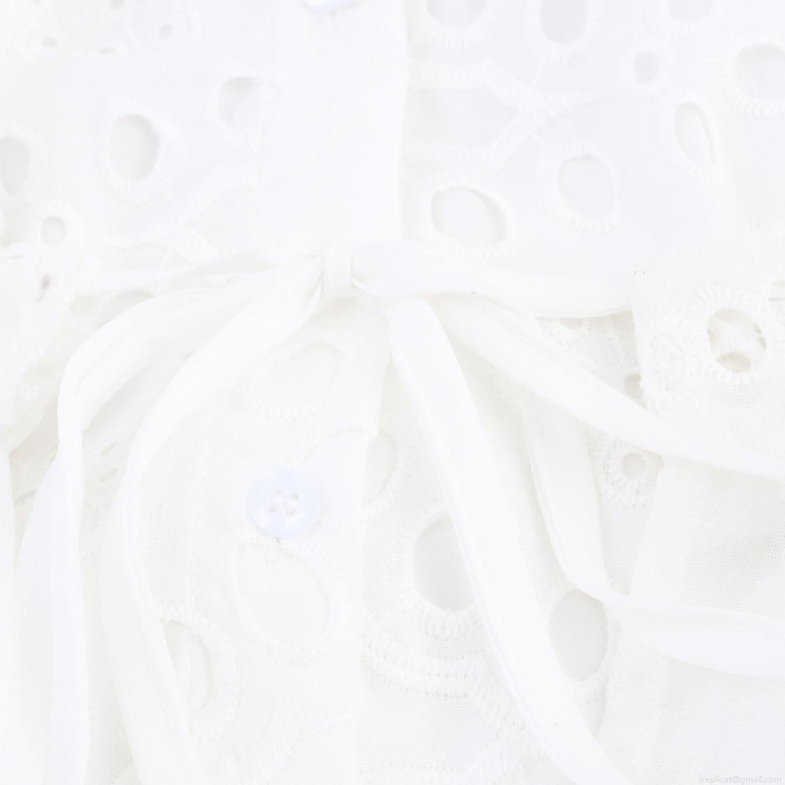Embroidery, Hollow Out, Flowers, Buttons, Hollow Out Pattern, Drawstring, Ruffled Hem