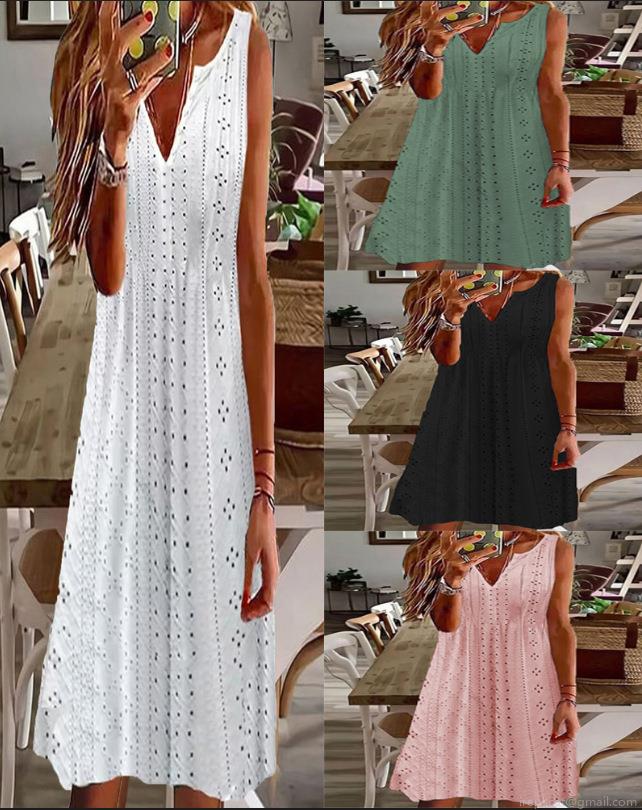 • Women's Hollow Out Eyelet Embroidery V Neck Sleeveless Dress Summer Casual Loose Solid Color Mini Dress For Women Vacation Beach Party Wear