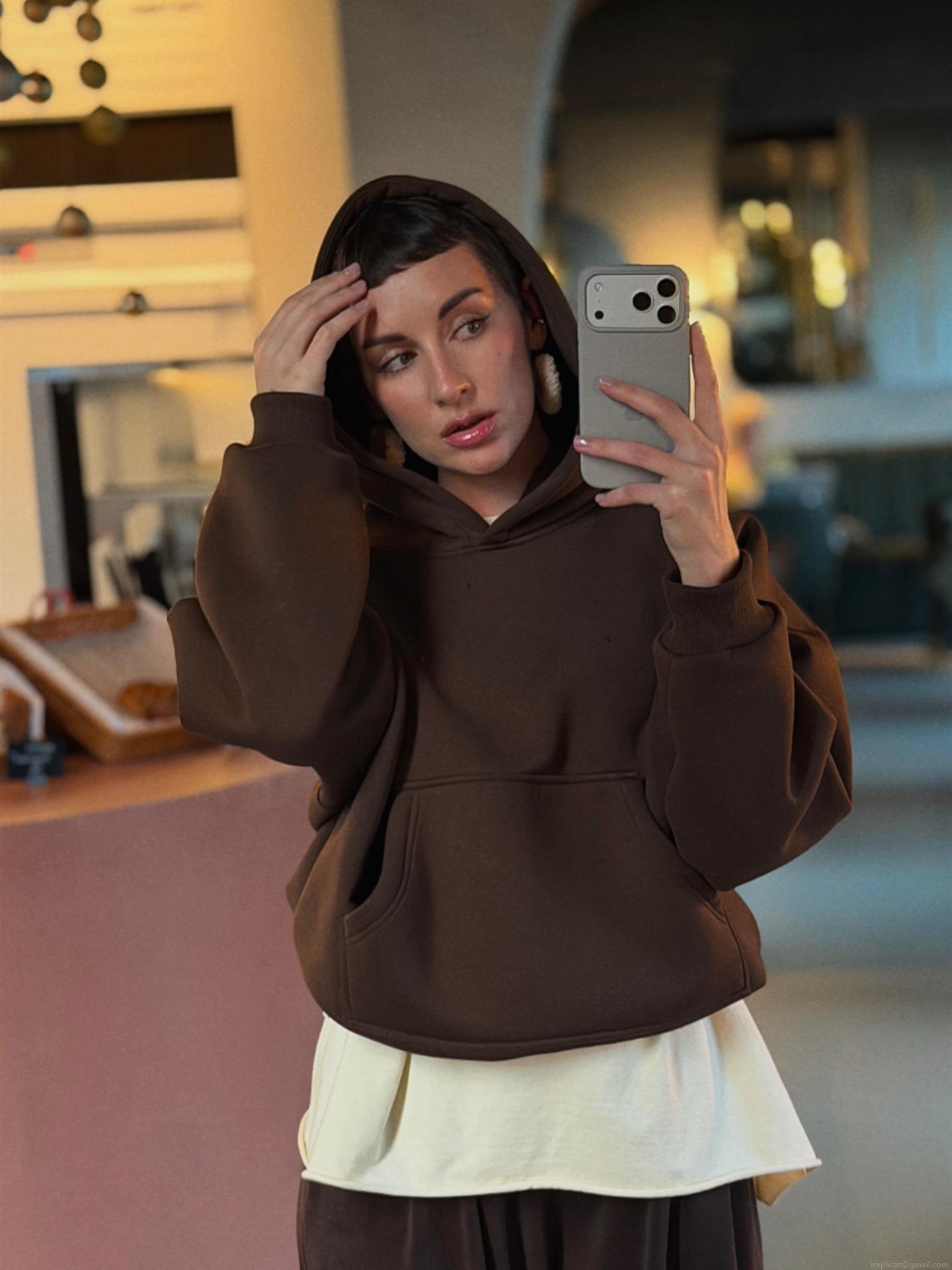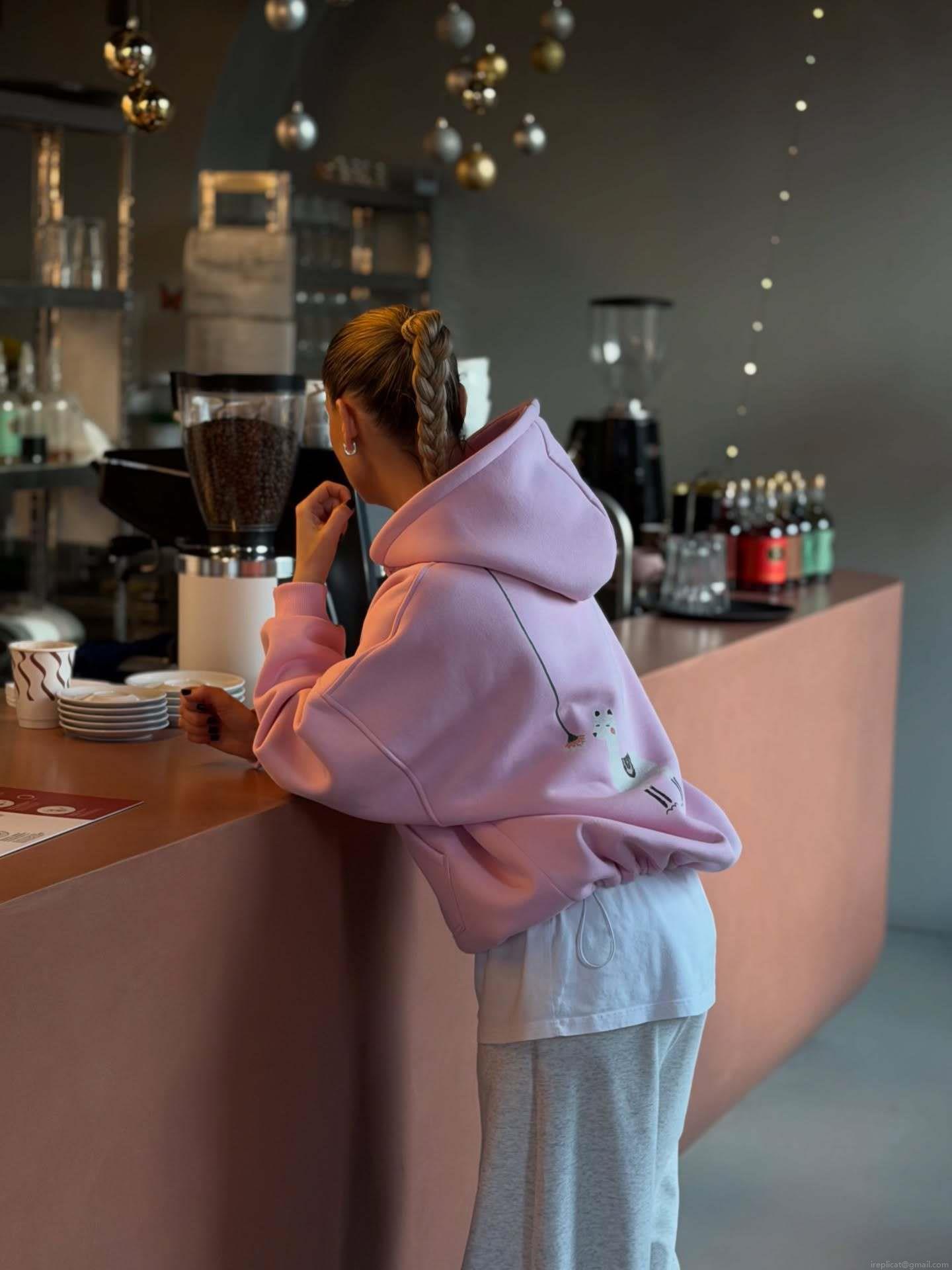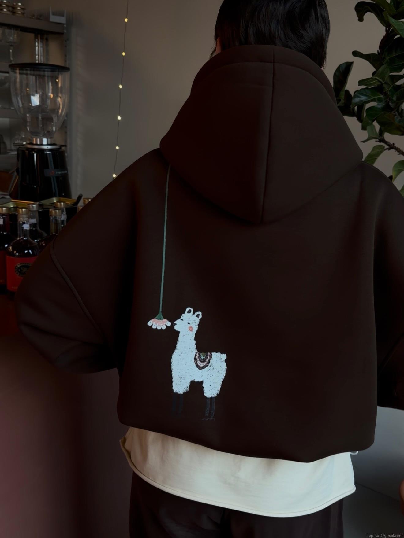 • Women's 100% Cotton Fleece Alpaca Print Oversized Hoodie Warm Long Sleeve Pullover Casual BF Style Loose Sweatshirt for Winter Autumn Streetwear