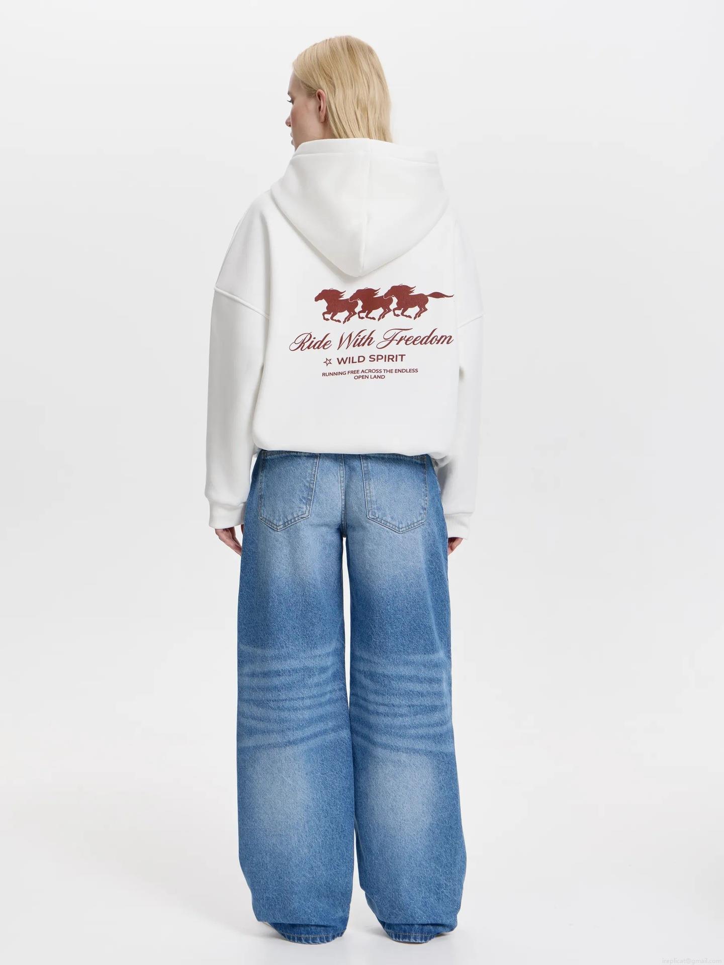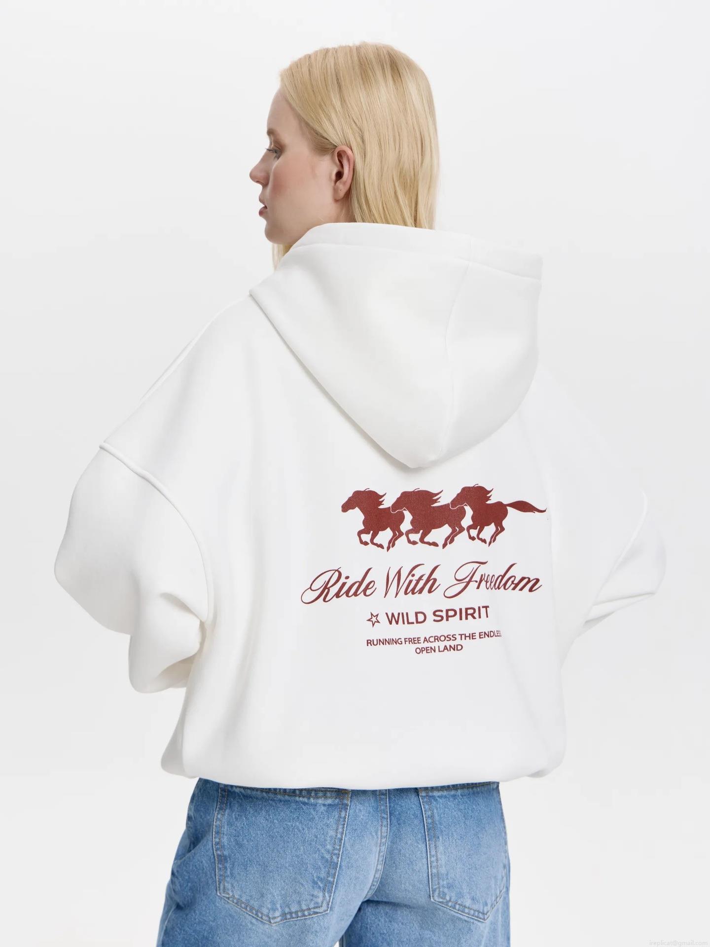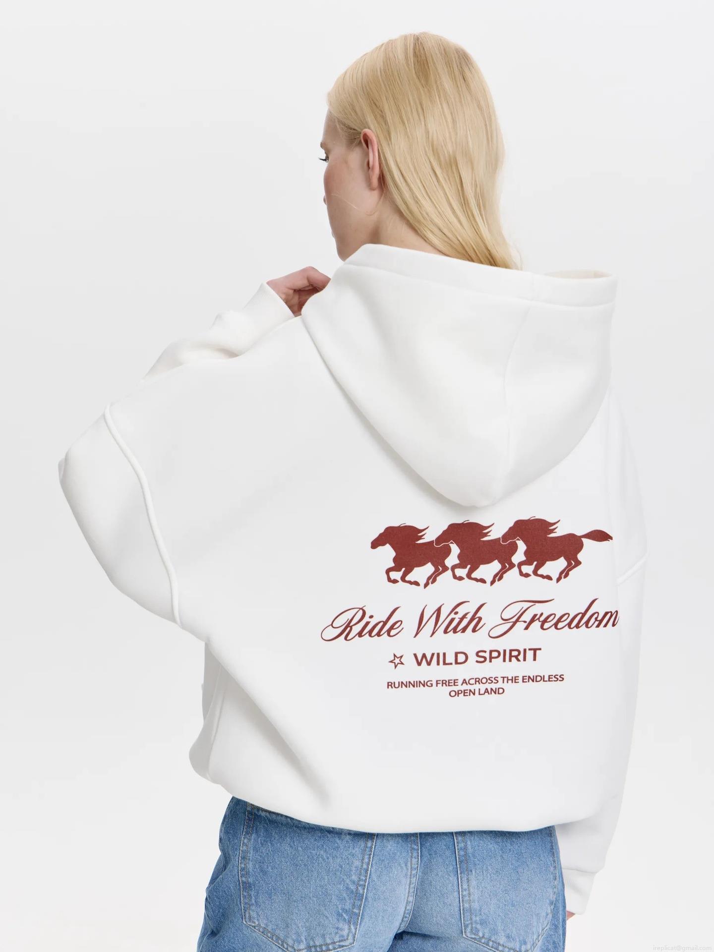 • Women's 100% Cotton Oversized Hooded Sweatshirt Back Wild Spirit Horse Graphic Print Warm Long Sleeve Pullover Hoodie Boyfriend Streetwear Top