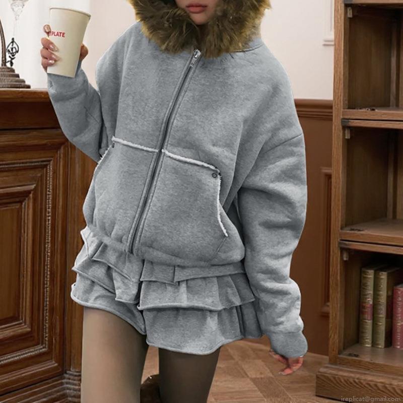 • Women's American Retro Hooded Sweatshirt Jacket With Faux Fur Collar Thick Sherpa Lined Full Zip Loose Fit Winter Warm Fleece Hoodie Coat For Women