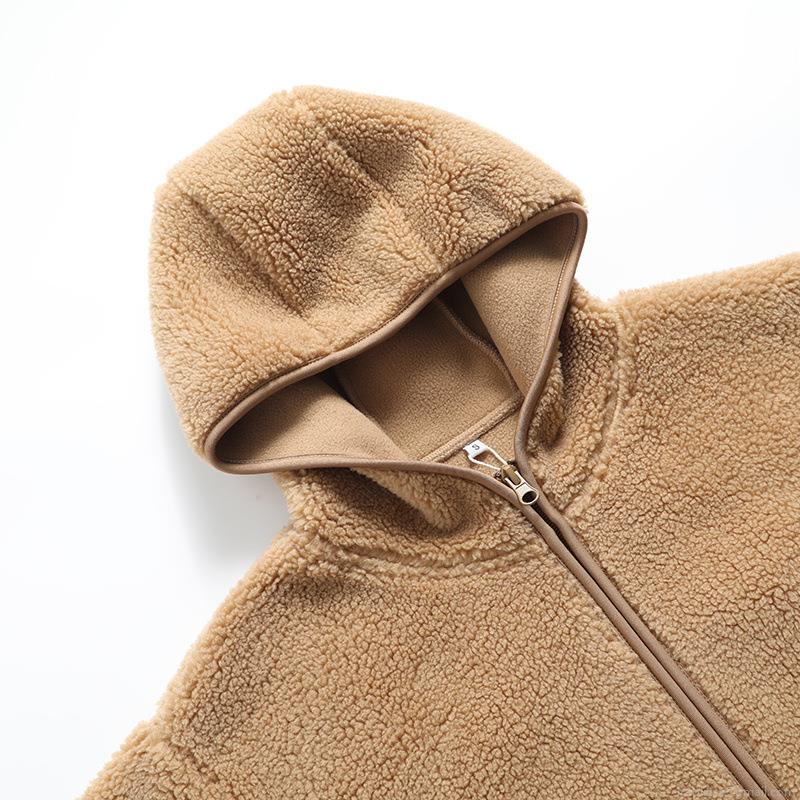 • Women's Casual Lamb Wool Fleece Hoodie Jacket Warm Zip Up Solid Color Long Sleeve Hooded Sweatshirt With Pockets For Autumn Winter