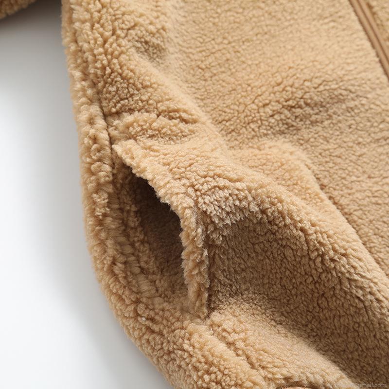 Women's Casual Lamb Wool Fleece Hoodie Jacket Warm Zip Up Solid Color Long Sleeve Hooded Sweatshirt With Pockets For Autumn Winter