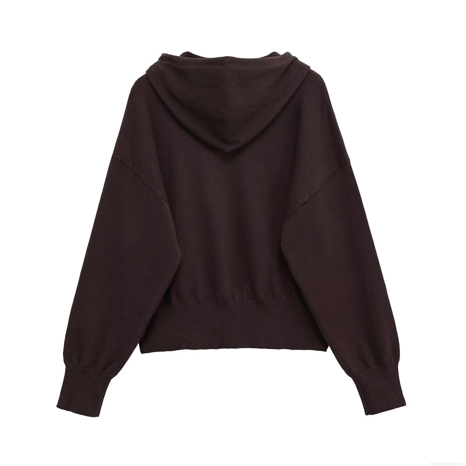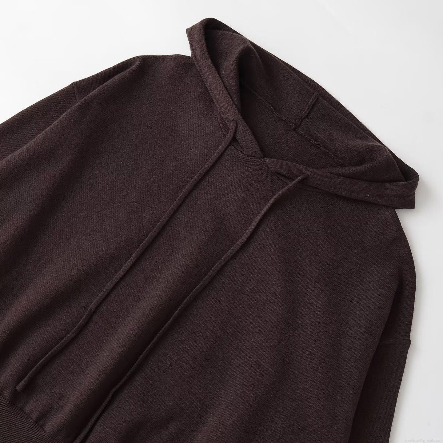 • Women's Casual Solid Color Knitted Hoodie Long Sleeve Streetwear Pullover Knit Sweatshirt Top For Autumn Winter Street Style Soft Warm Comfortable Loose Fit