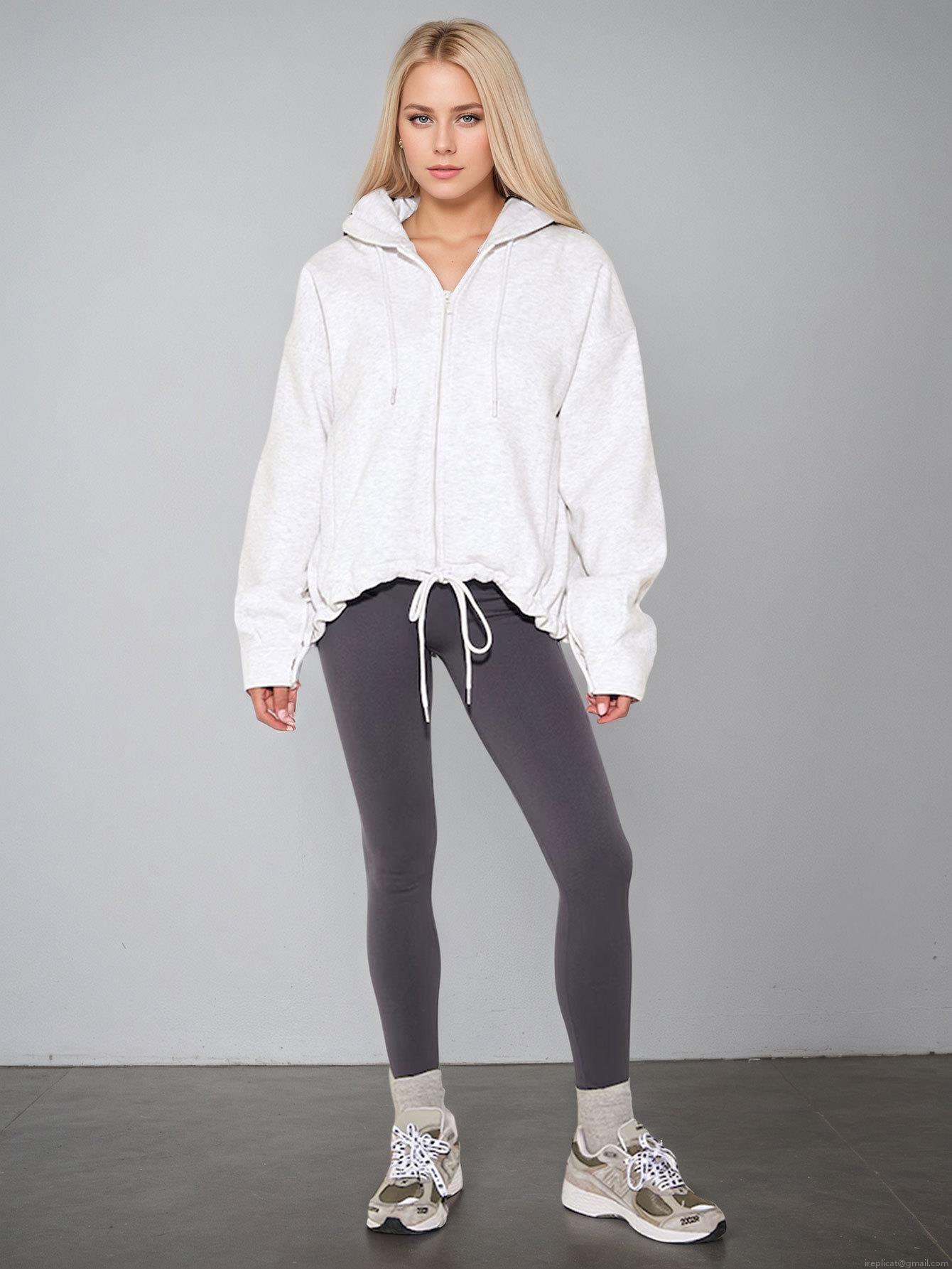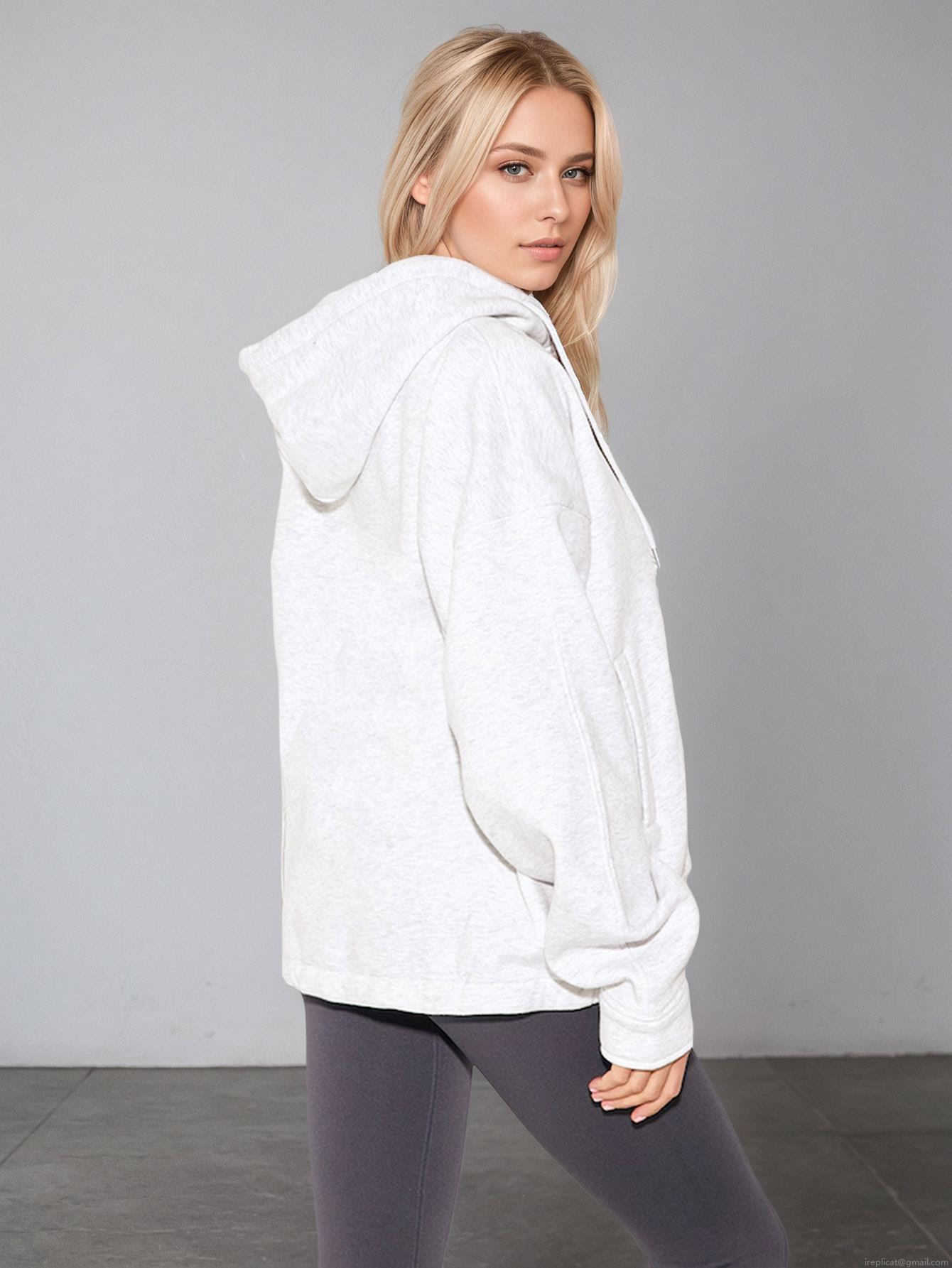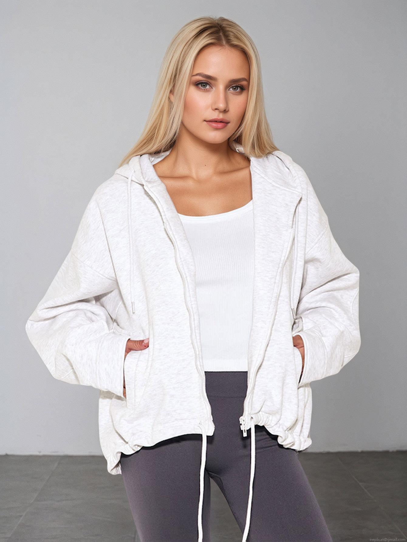 • Women's Casual Zip-Up Hoodie Oversized Knit Sweatshirt Jacket With 80% Polyester 20% Cotton Solid Color Drawstring Hooded Top For Sports Outdoor Daily Women Clothing