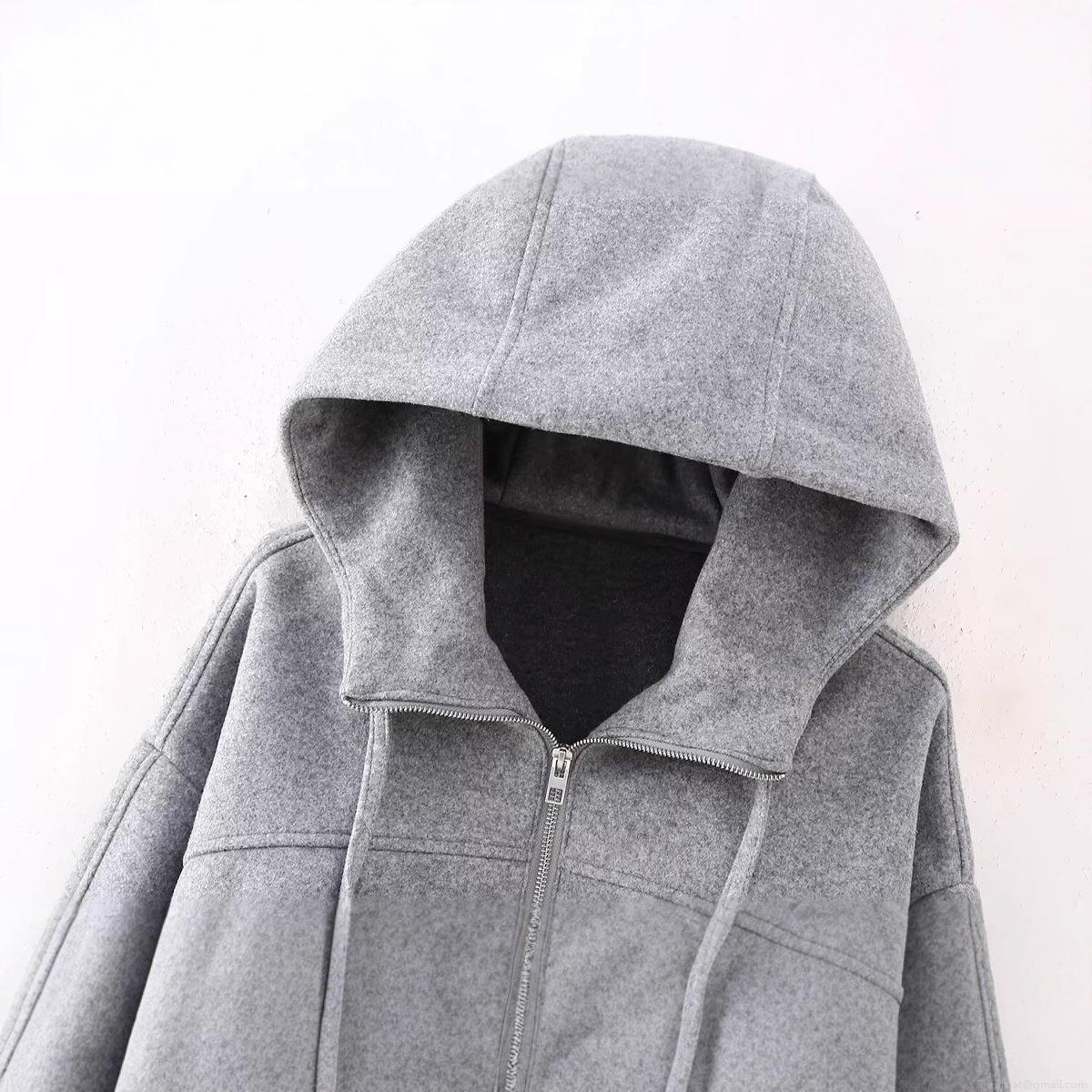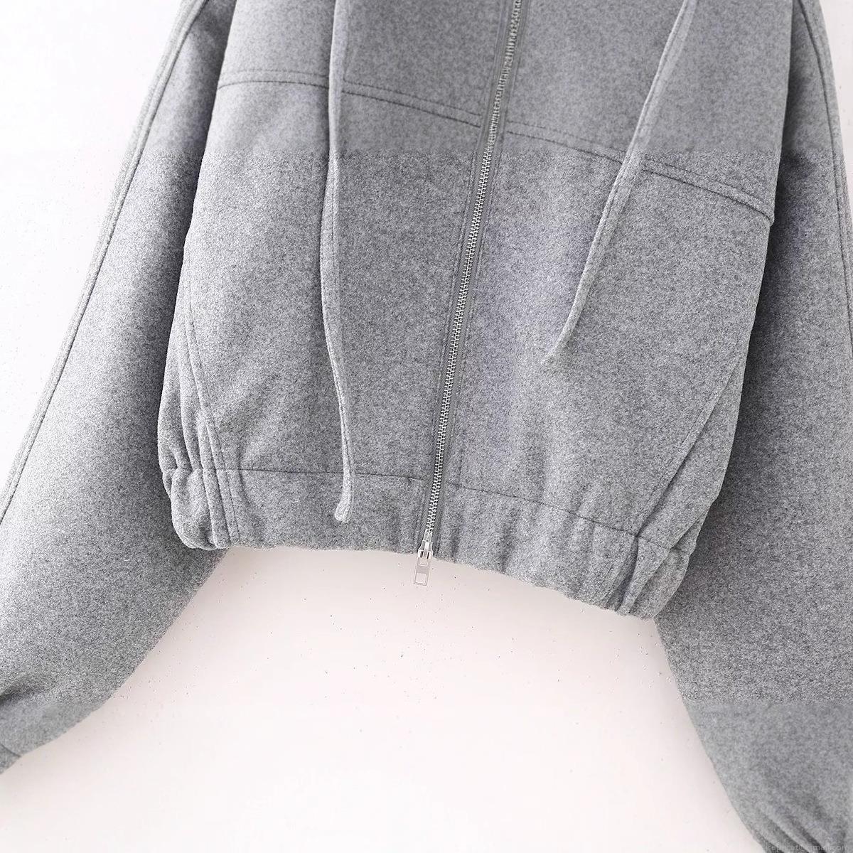 Solid Color, Zipper, Drawstring, Hood, Short Crop Top