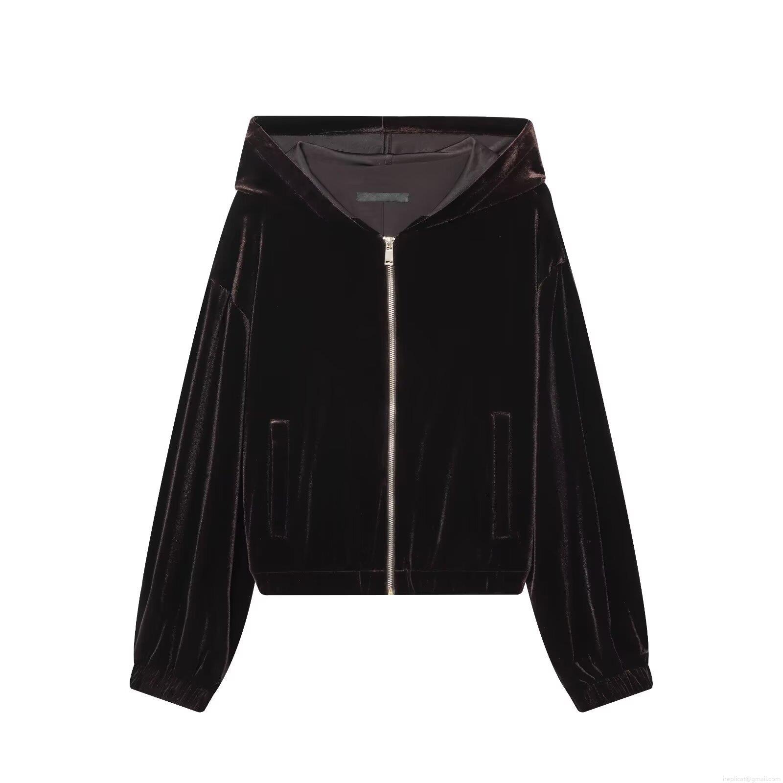 • Women's Fashion Velvet Hooded Jacket Casual Solid Color Zip Up Velour Sweatshirt Long Sleeve Short Outerwear For Women Autumn Winter Stylish Lady Outfits