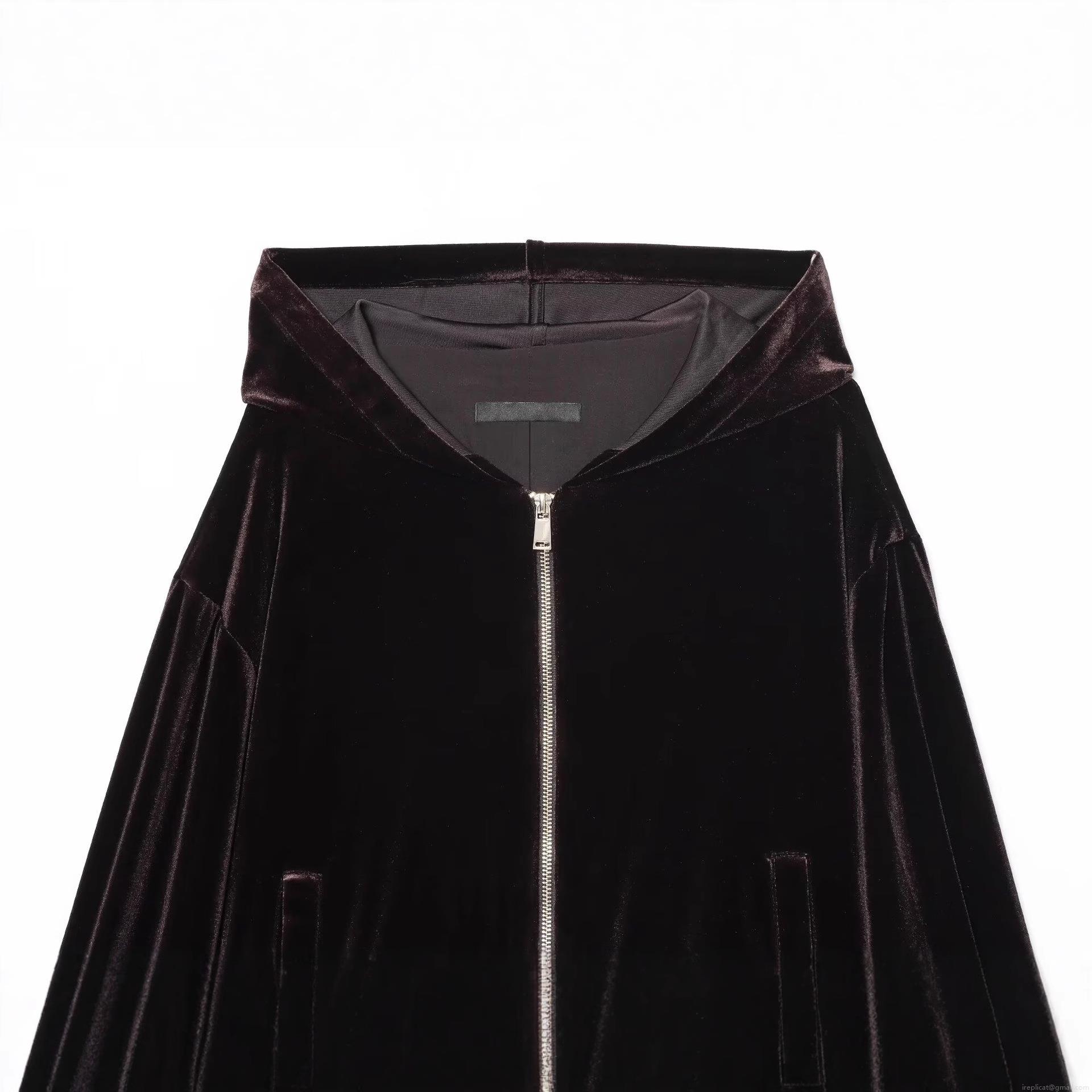 Solid Color, Zipper, Hood, Velvet Texture, Ribbed Cuffs
