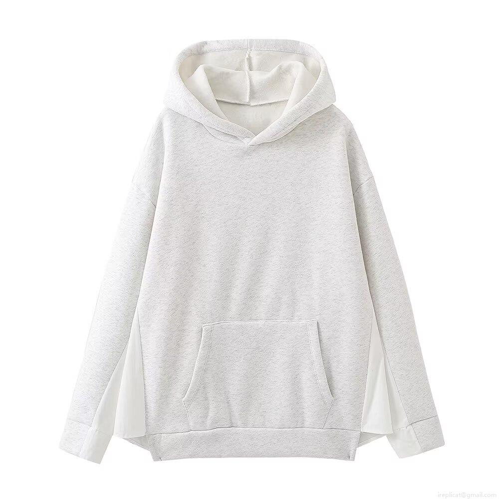 Solid Color, Splice, Kangaroo Pocket, Hem Slit