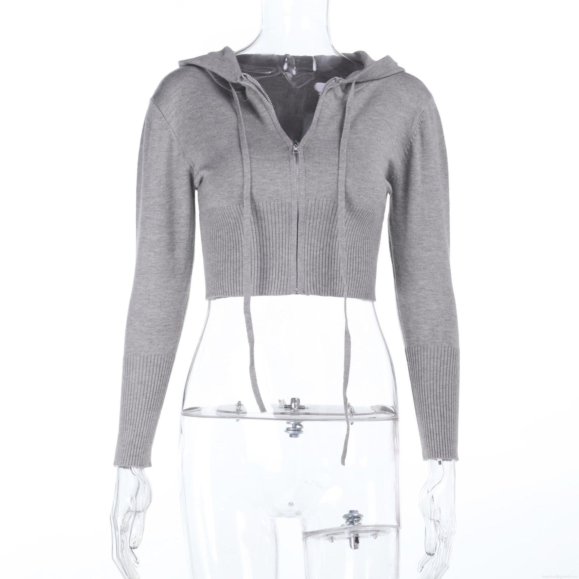 • Women's Knitted Zip Up Hooded Sweatshirt Viscose Nylon Blend Solid Color Cropped Top Casual Sports Outdoor Long Sleeve Jacket For Women