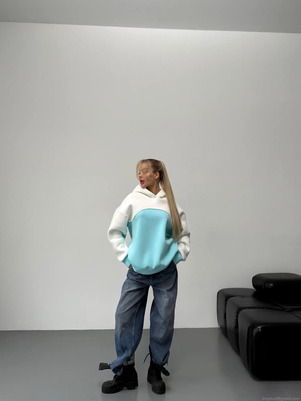 Women's Loose Hooded Sweatshirt 100% Cotton Contrast Color Stitching Long Sleeve Pullover Oversized Streetwear Casual Hoodie For Ladies Spring Fall Top