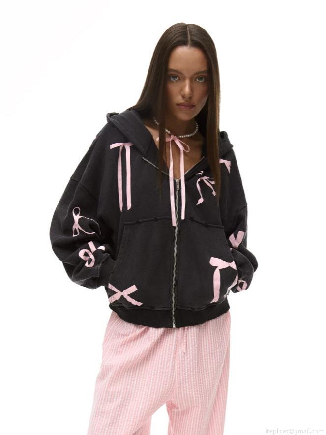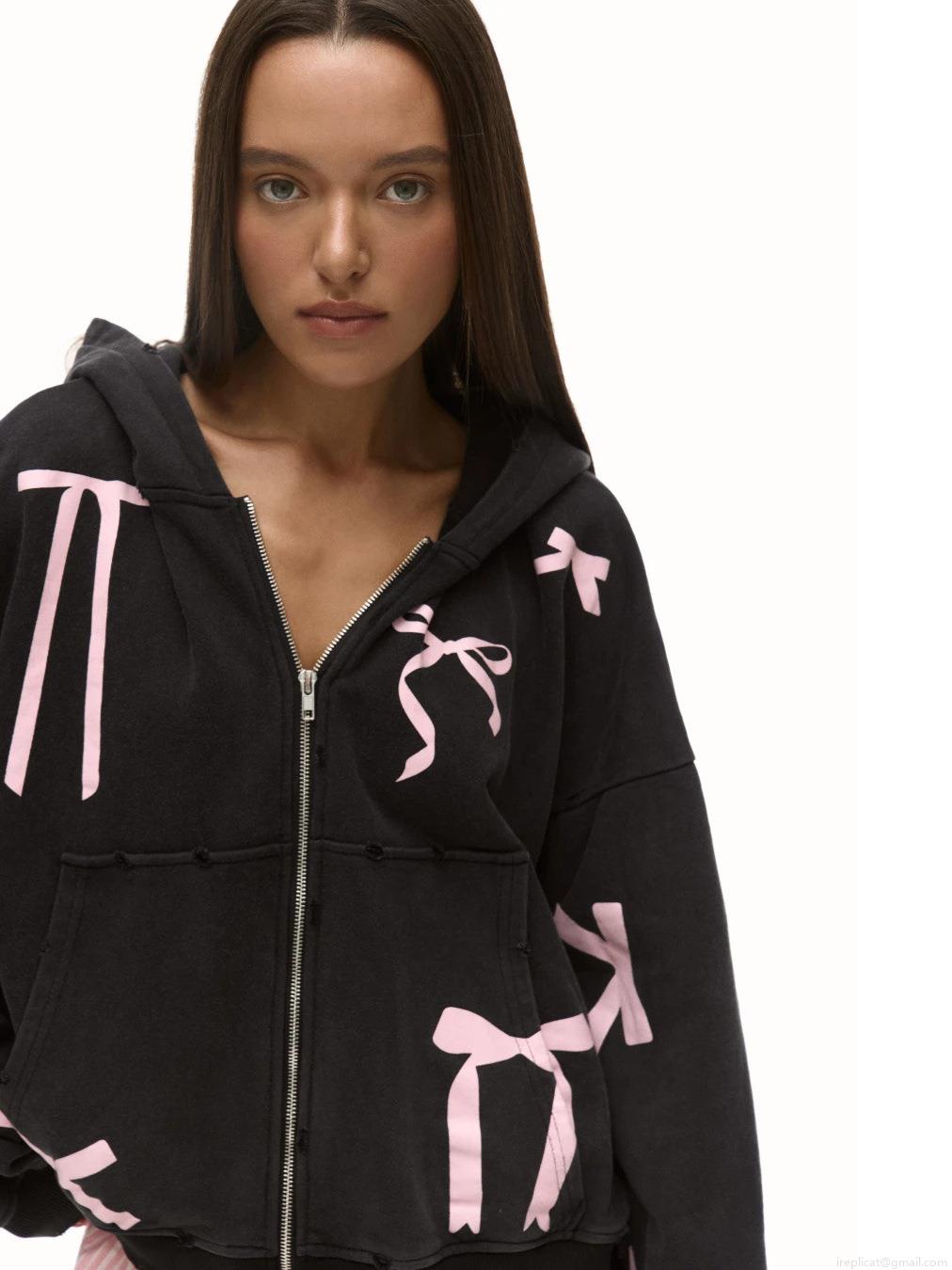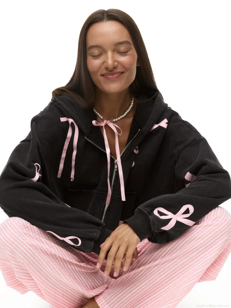 • Women's Loose Hooded Zip-up Hoodie Cotton Blend Pink Bow Graphic Sweatshirt Long Sleeve Oversized Jacket Spring Autumn Casual Sweet Streetwear