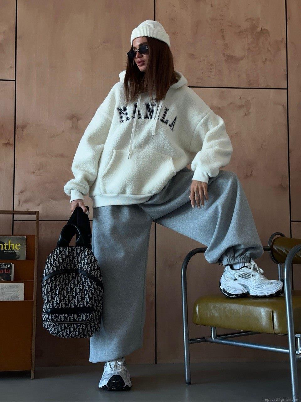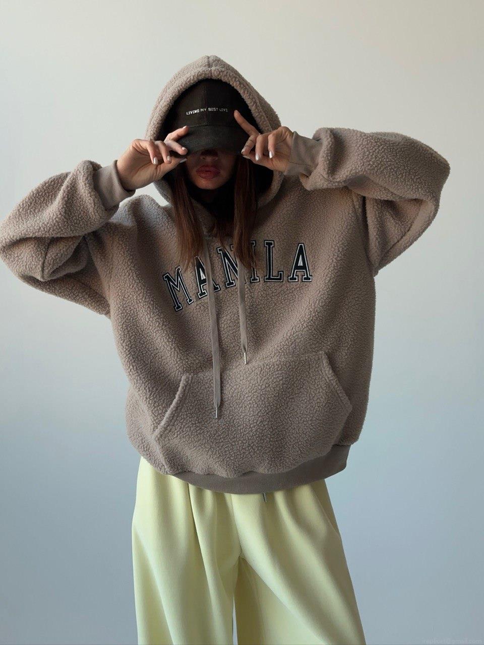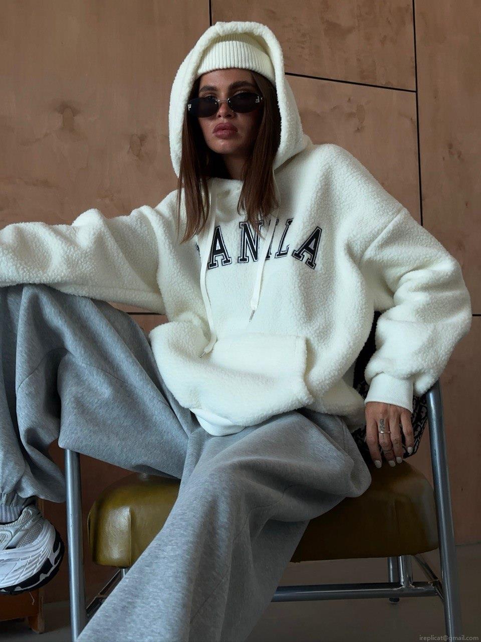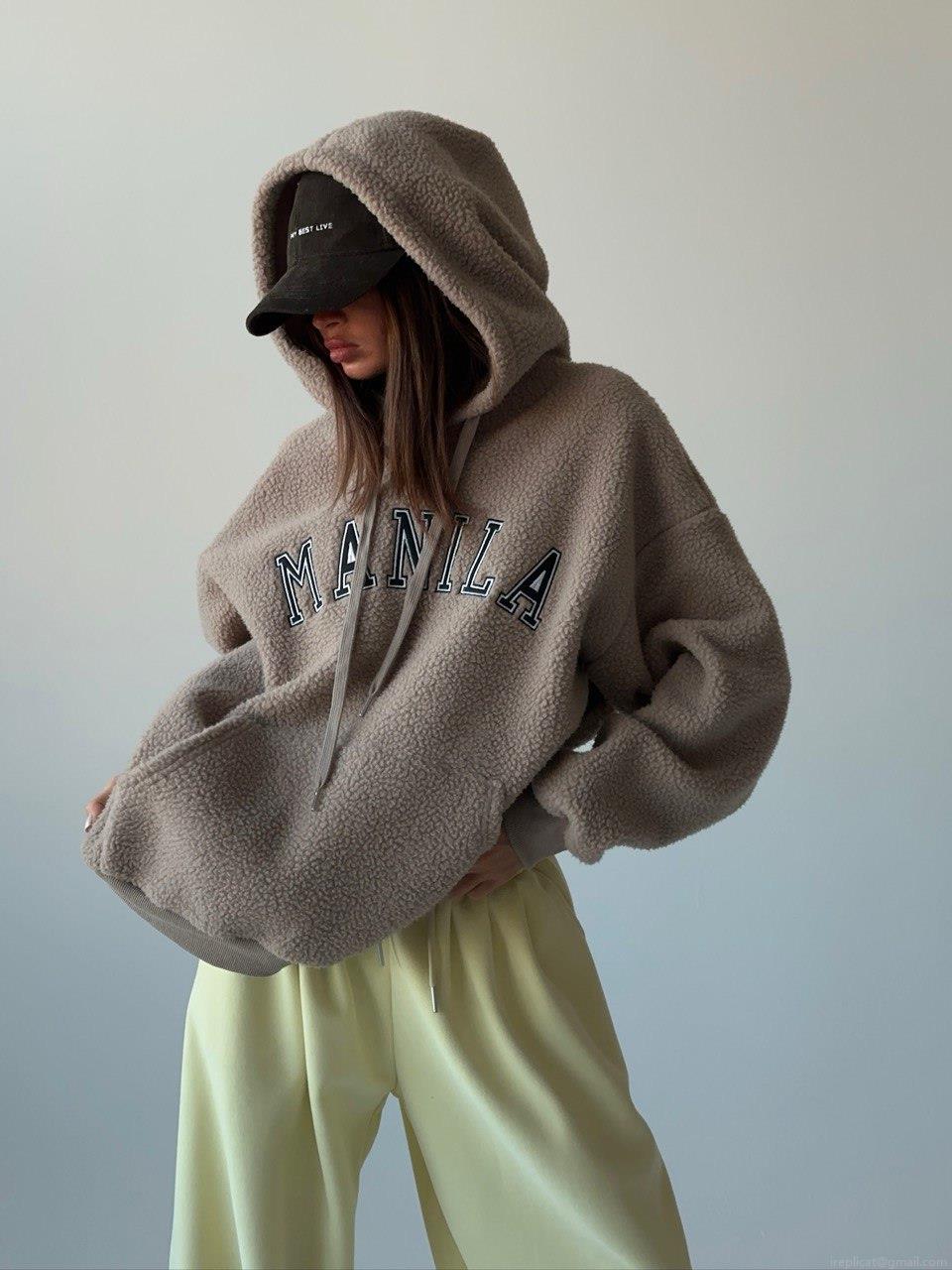 • Women's MANILA Embroidered Polar Fleece Hoodie Loose Thickened Teddy Fleece Hooded Sweatshirt Casual Streetwear Autumn Winter Plush Jacket