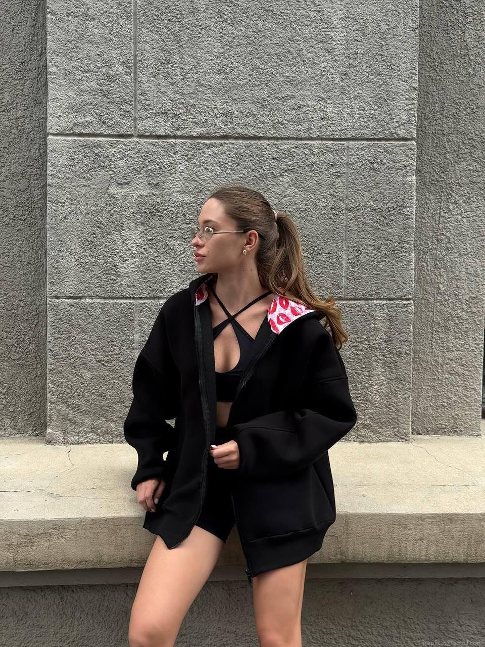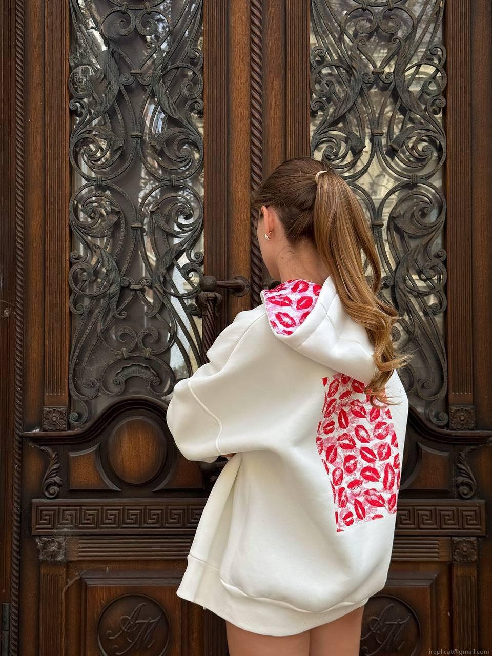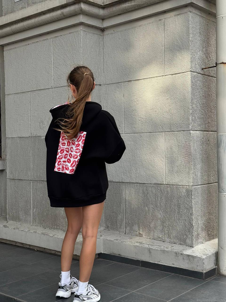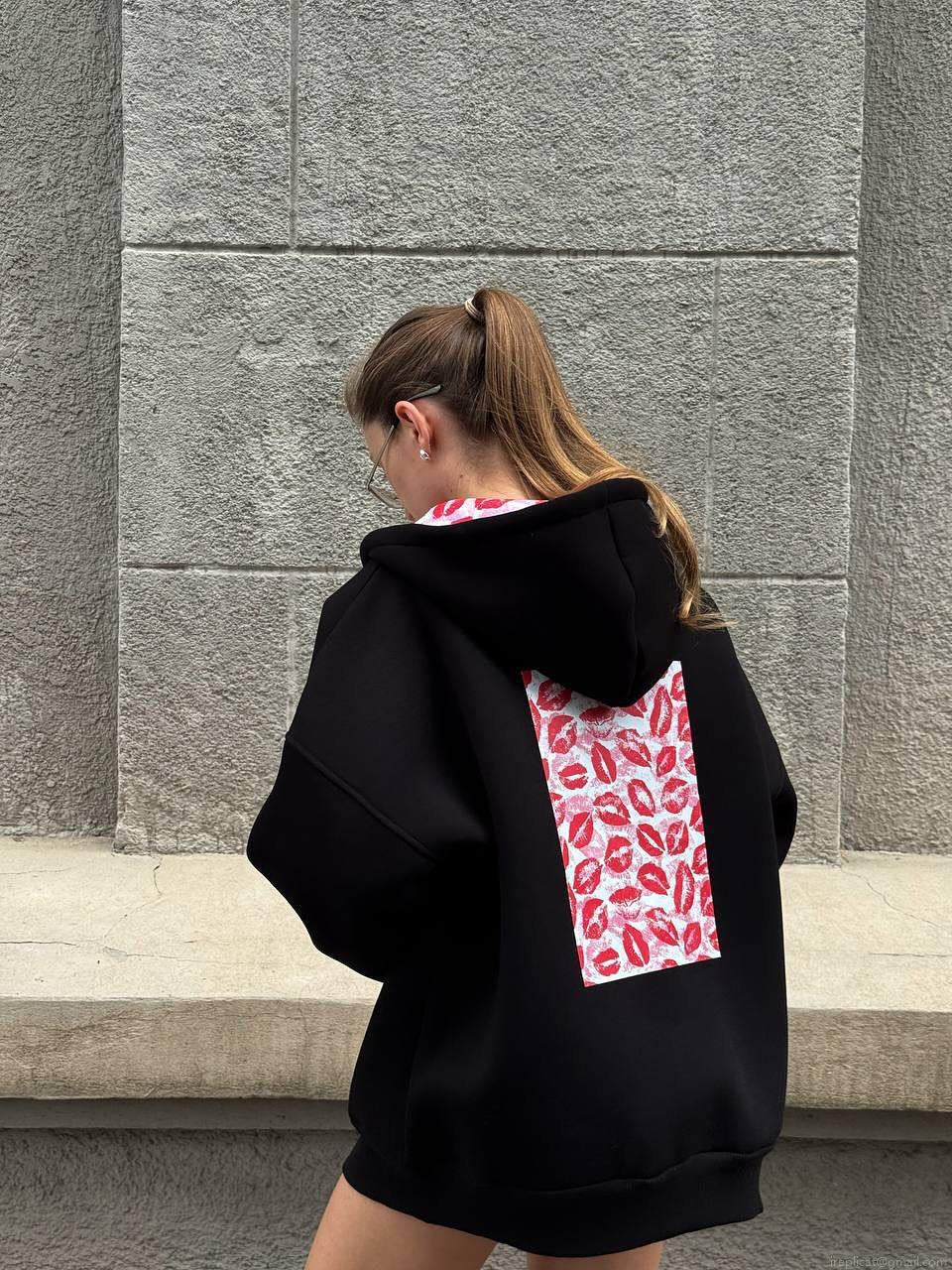 • Women's Oversized 100% Cotton Hoodie Sexy Red Lip Print Boyfriend Style Warm Long Sleeve Zip Up Pullover Sweatshirt For Autumn Winter Streetwear