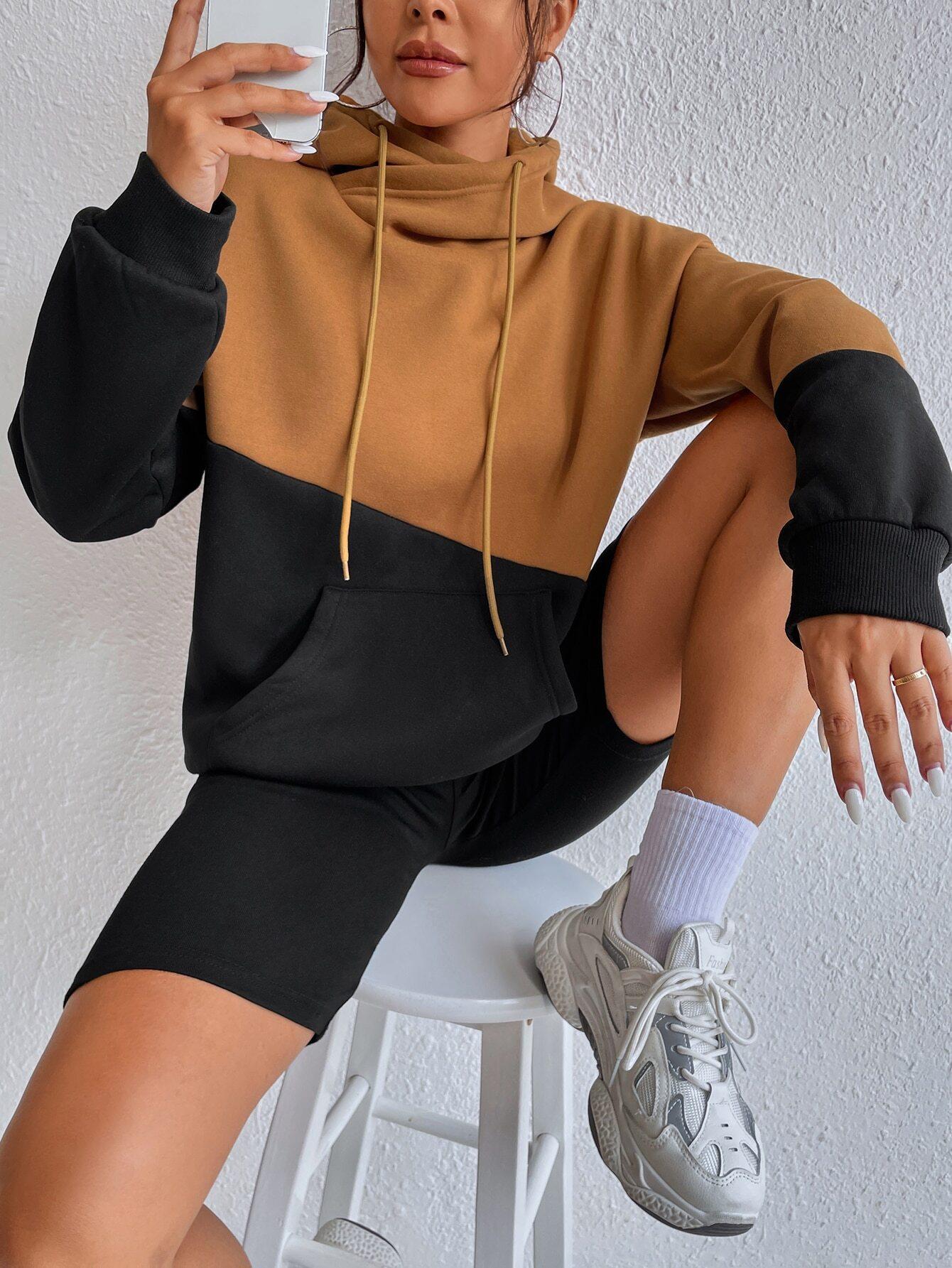 Color Blocking, Big Pocket, Hooded Drawstring