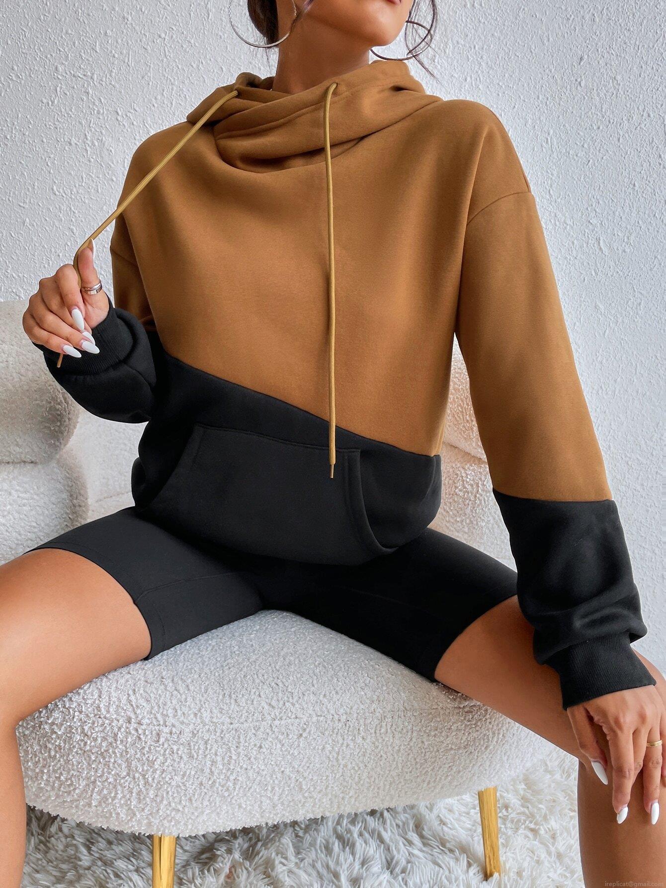 • Women's Oversized Color Block Hooded Sweatshirt Fleece Lined Warm Long Sleeve Pullover Hoodies With Pocket Streetwear For Autumn Winter