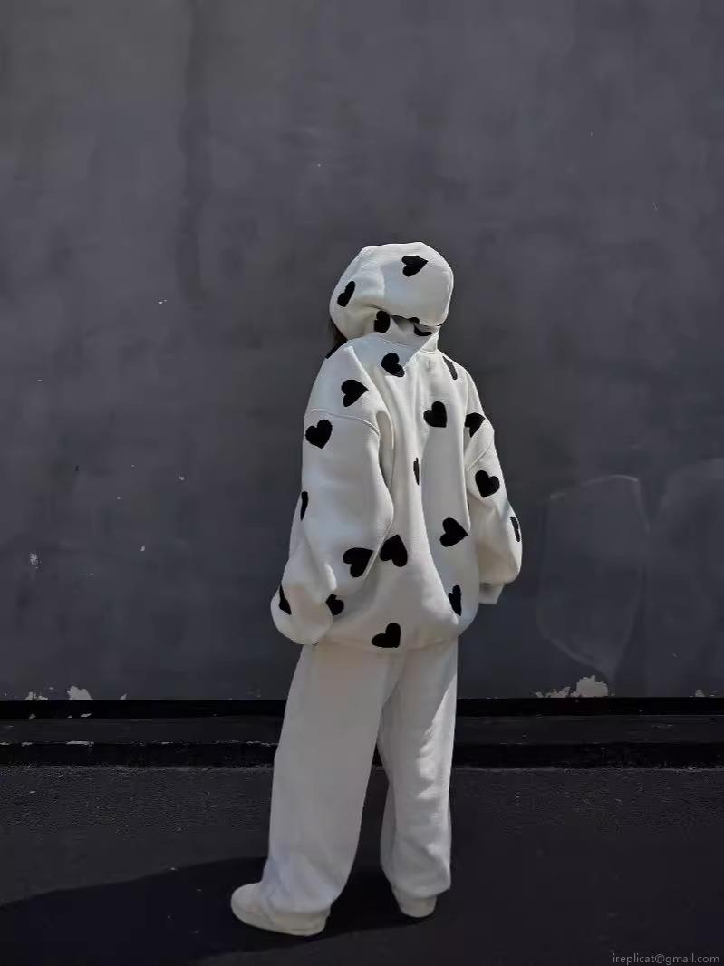 Women's Oversized Cotton Blend Hoodie Sweatshirt Heart Patchwork Print Long Sleeve Pullover Tops Casual Streetwear Hooded Suit