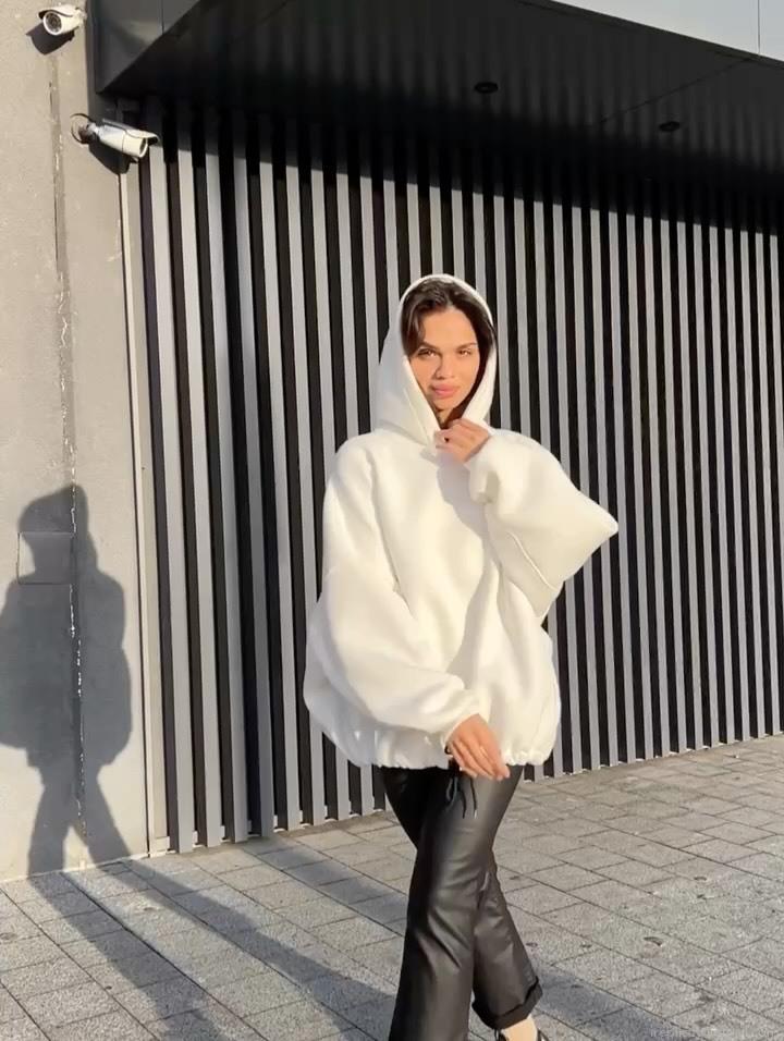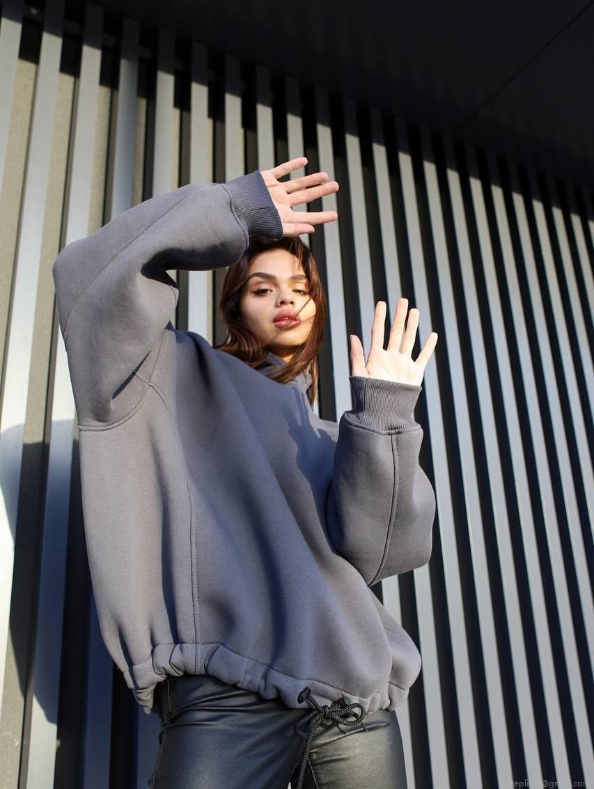 • Women's Oversized Hooded Sweatshirt 100% Cotton Back Letter Embroidery Dropped Shoulder Boyfriend Style Streetwear Pullover Hoodie