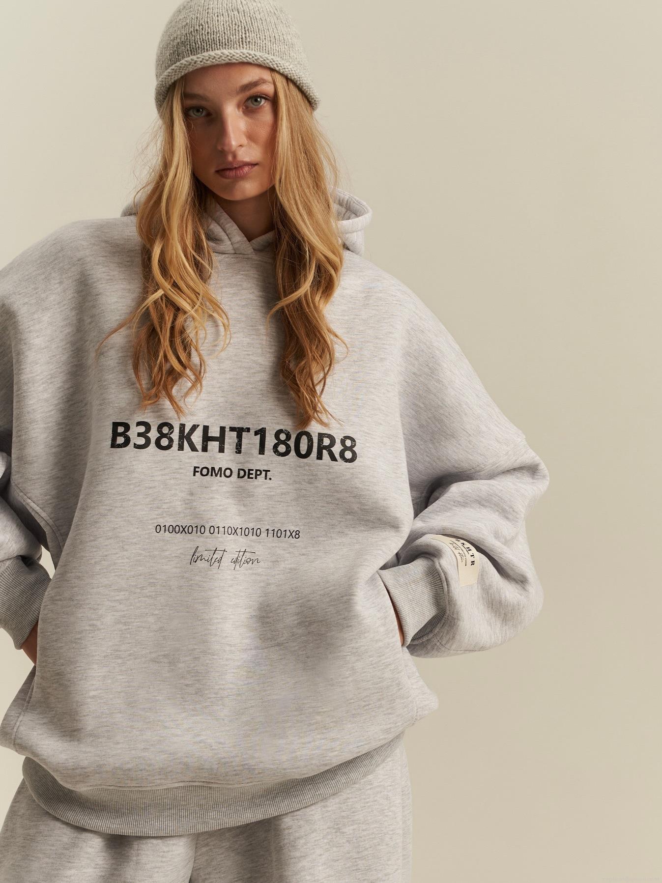 • Women's Oversized Hooded Sweatshirt 100% Cotton Letter Print Long Sleeve Pullover Autumn Winter Streetwear Casual Loose Hoodie Jacket Gray