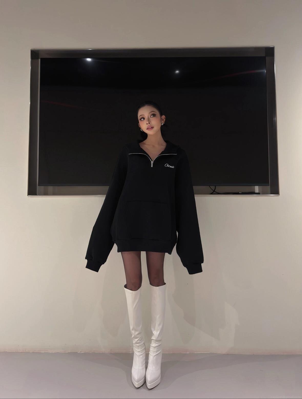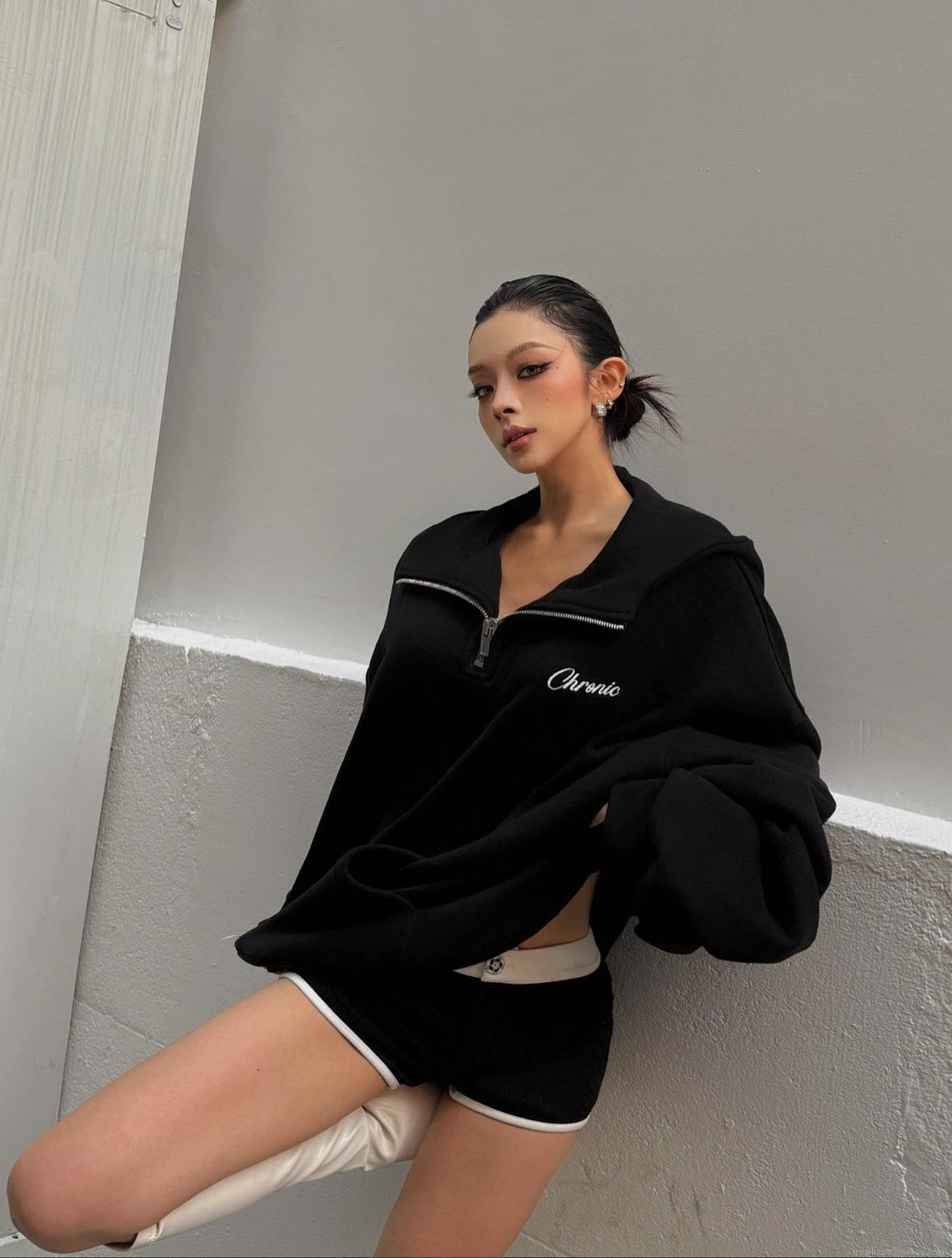 Letters, Half Zipper, Printing, Bf Style, Oversized, Chronic
