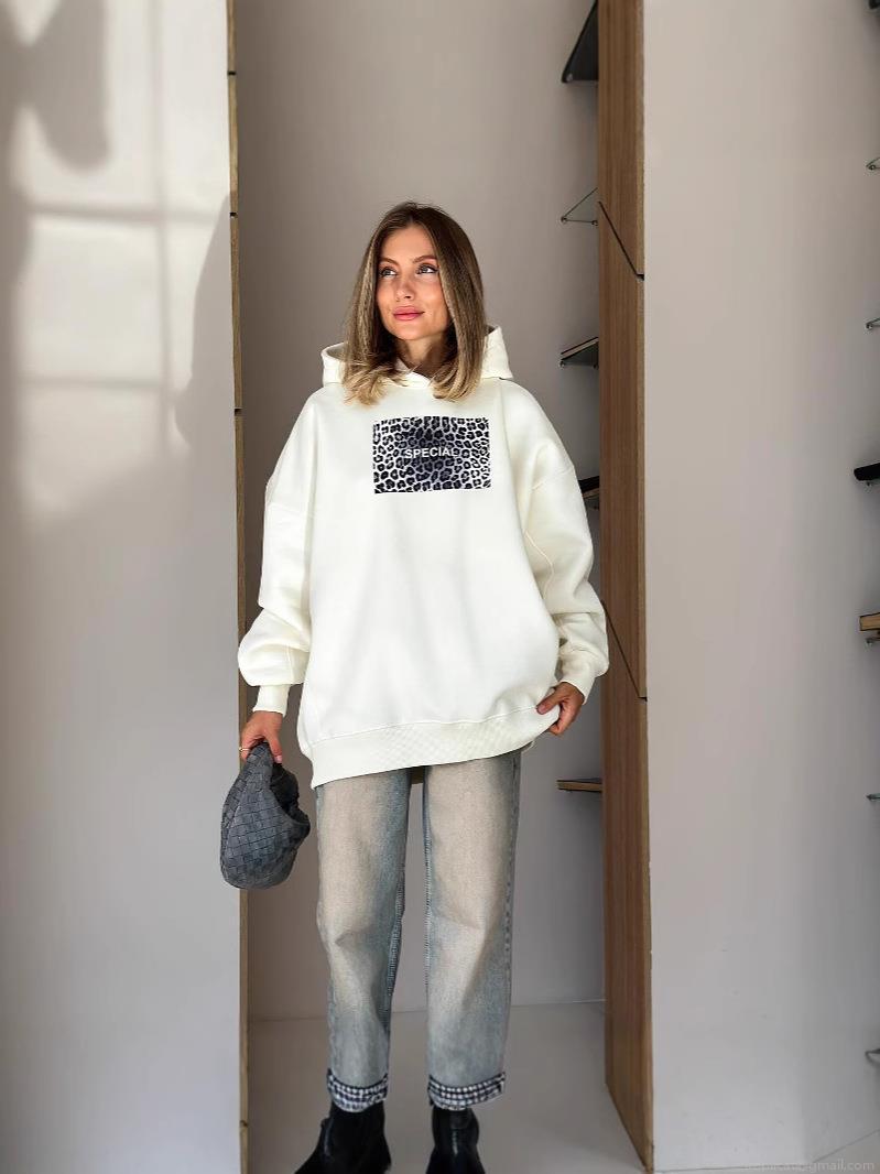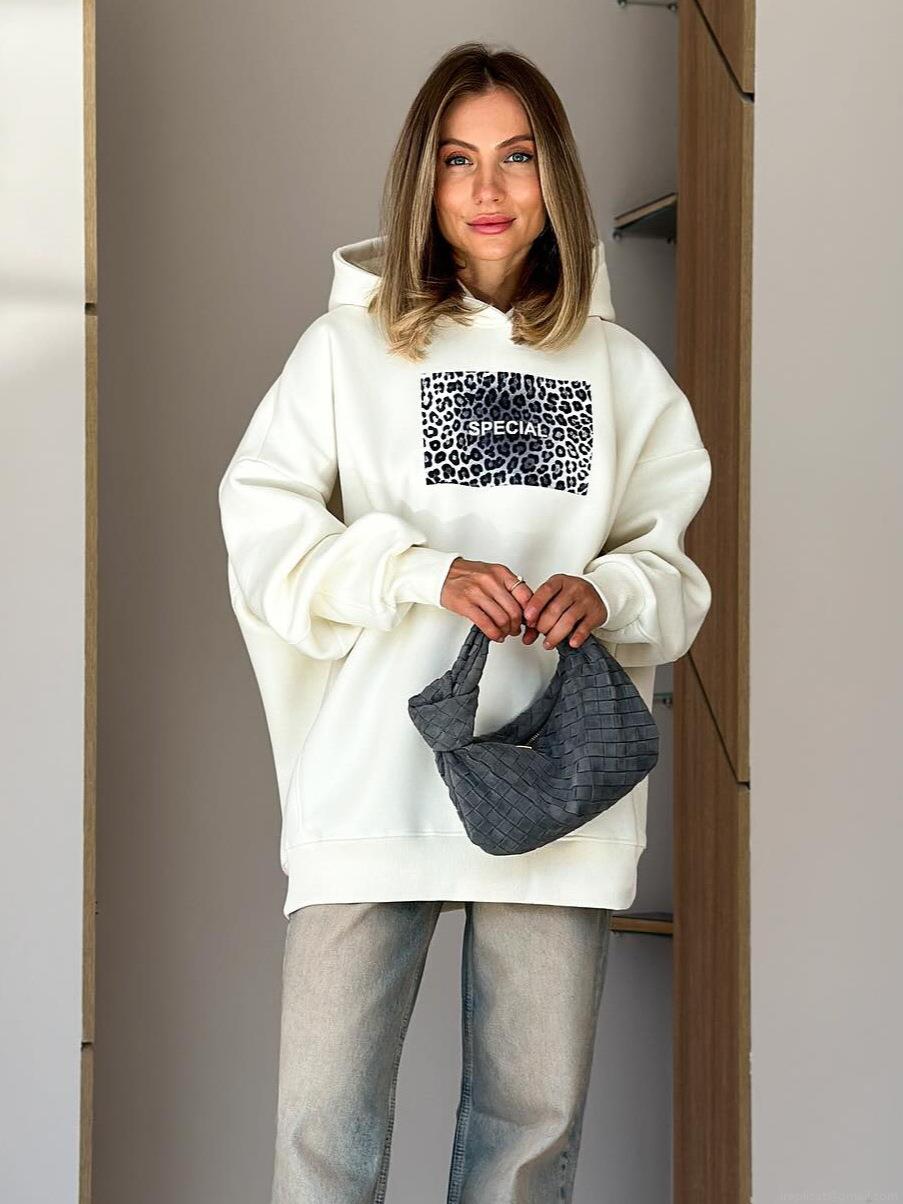 • Women's Oversized Leopard Print Patchwork Hoodie Cotton Blend Long Sleeve Letter Printed Pullover Sweatshirt Streetwear Casual Loose Top
