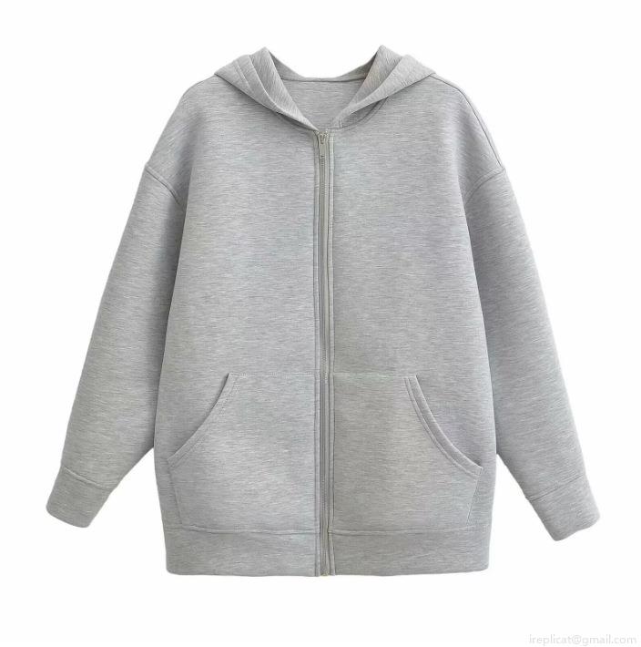 • Women's Oversized Zip-Up Hoodie Space Cotton Hooded Sweatshirt Grey Loose Solid Color Long Sleeve Jacket With Pockets For Daily Casual Streetwear