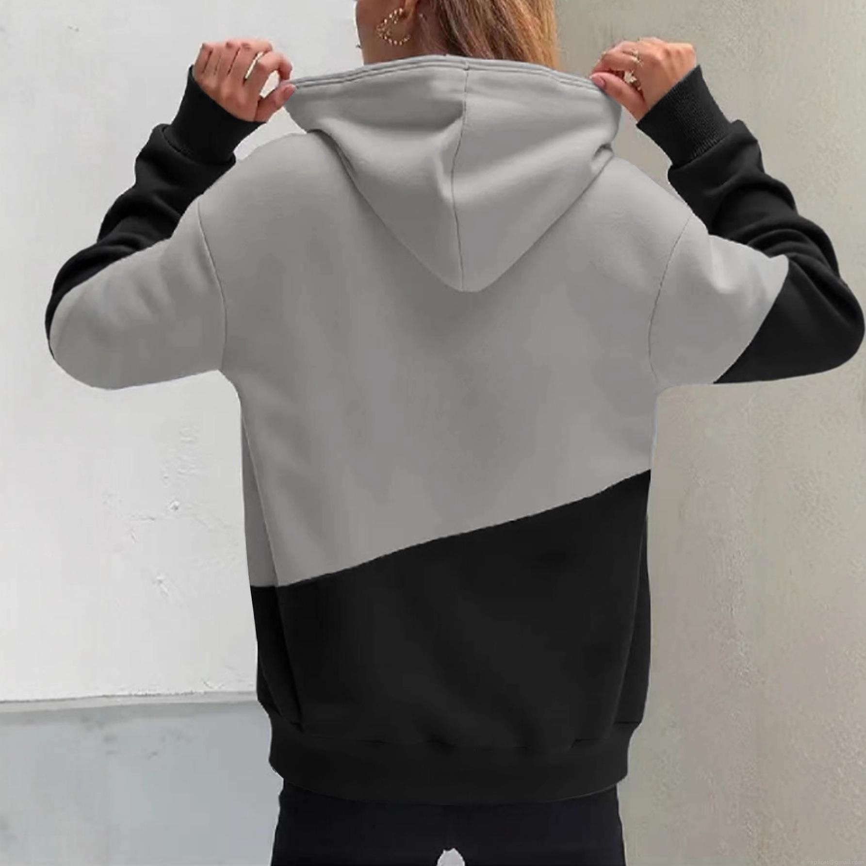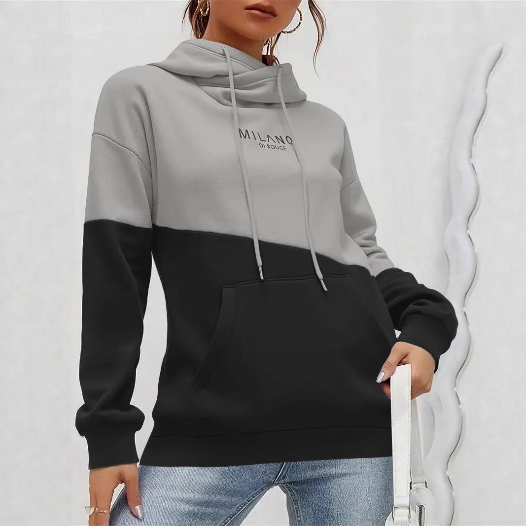 • Women's Plus Size Color Block Hoodie Sweatshirt Polyester Spandex Long Sleeve Letter Print Pullover With Pocket Casual Autumn Winter Hoodie Tops