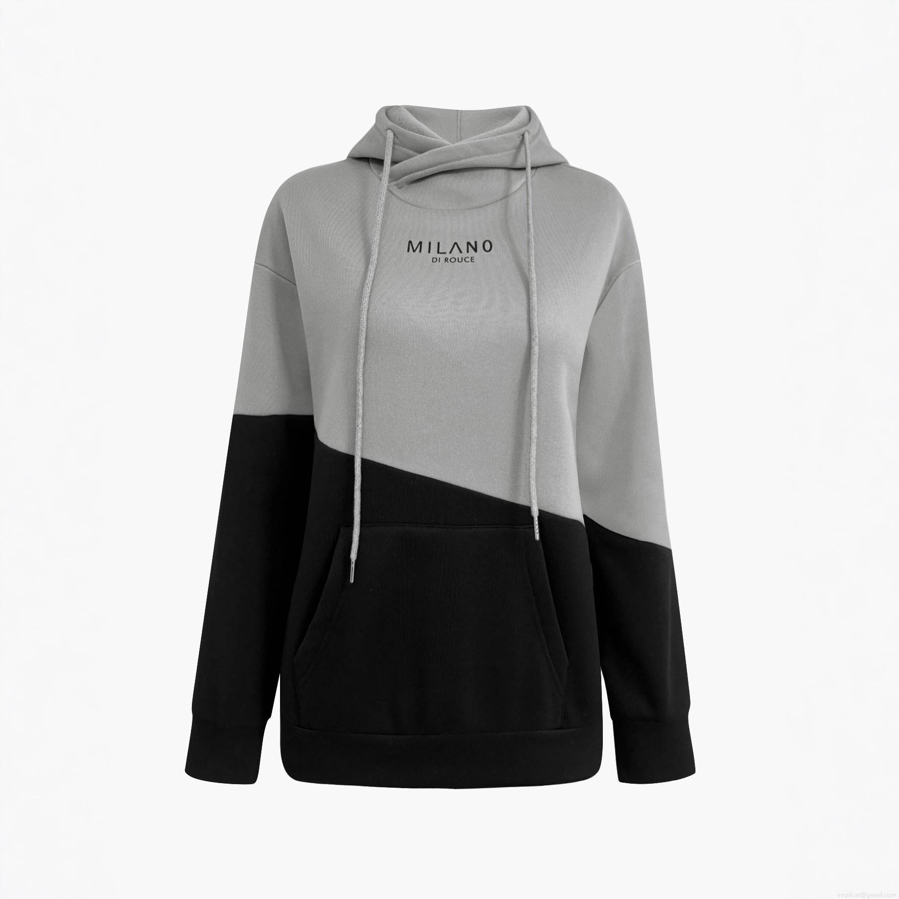 Pocket, Color Blocking, Drawstring, Letter Print