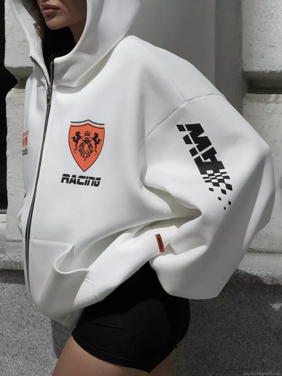 • Women's Racing Style Zip Up Hoodie Heavyweight Cotton Blend Oversized Loose Fit Long Sleeve Streetwear Trendy Sporty Racing Aesthetic Letter Shield Print Checkerboard Patterns Sweatshirt