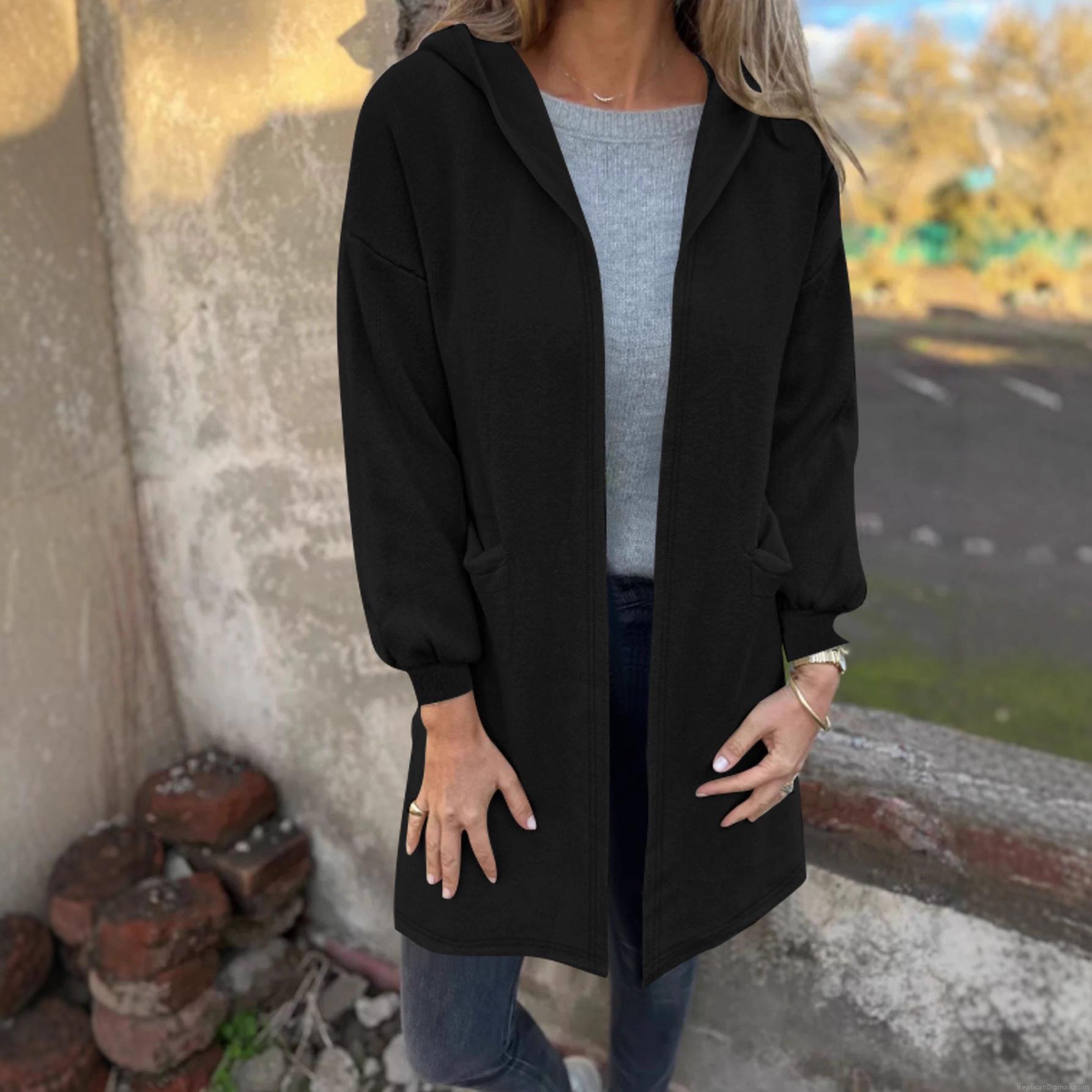 • Women's Solid Color Hooded Cardigan Coat Dralon Velvet Long Sleeve Open Front Hoodie Jacket with Pockets Casual Autumn Winter Warm Outerwear Ladies