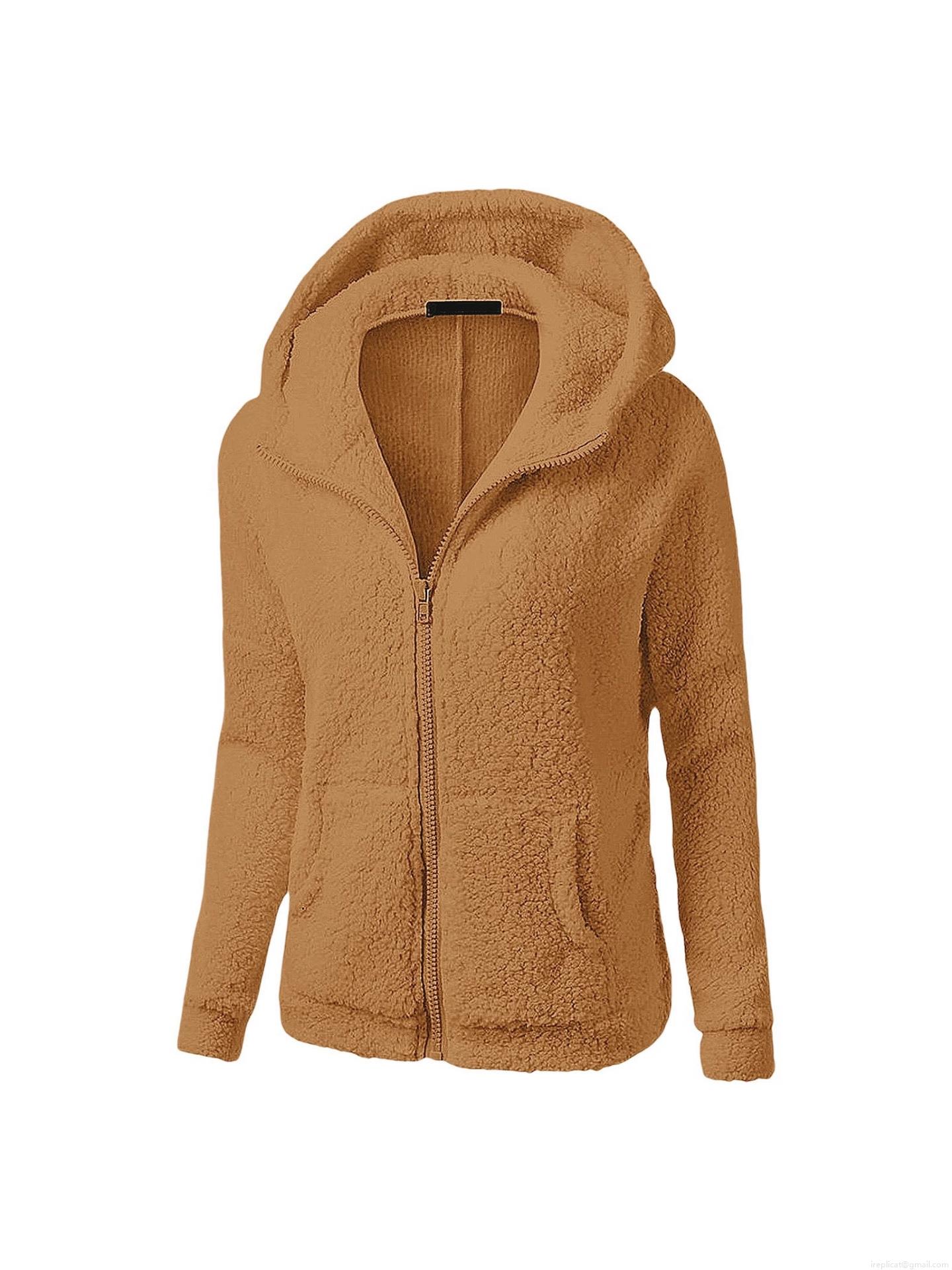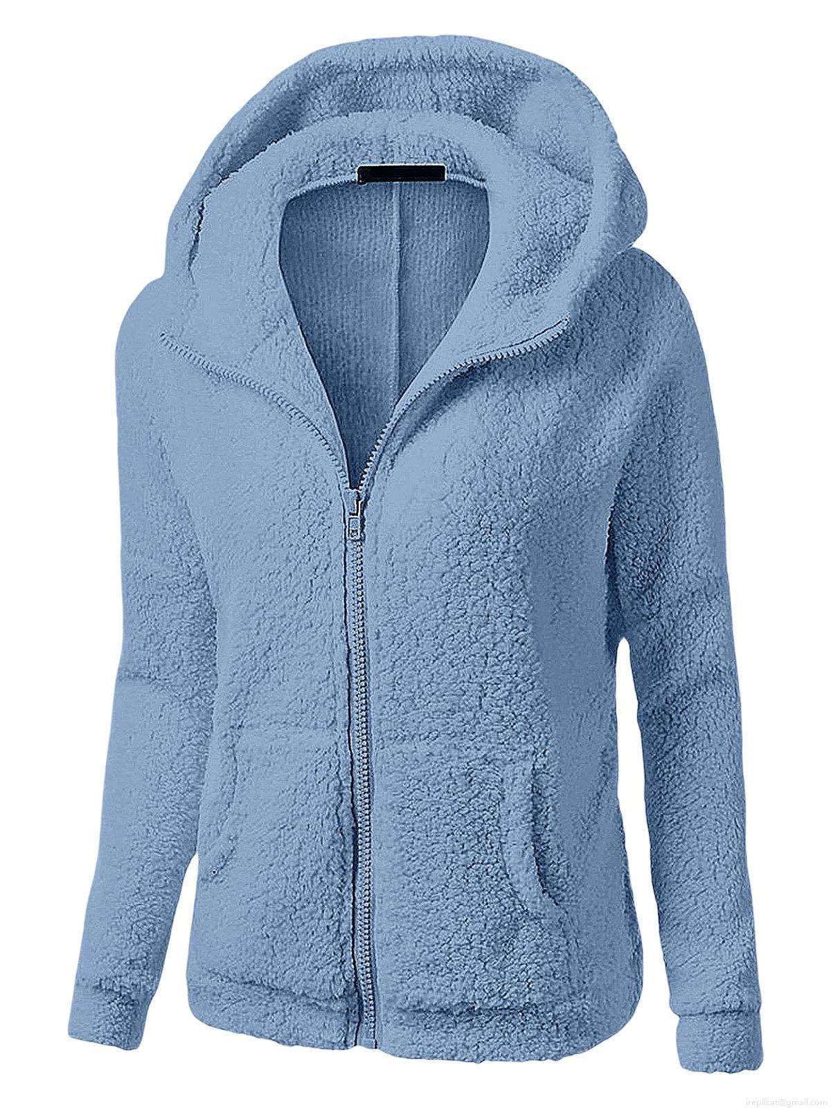 • Women's Solid Color Sherpa Fleece Hooded Jacket Winter Warm Long Sleeve Zip Up Mid Length Hooded Sweatshirt Plus Size Autumn Casual Daily Outwear Coat