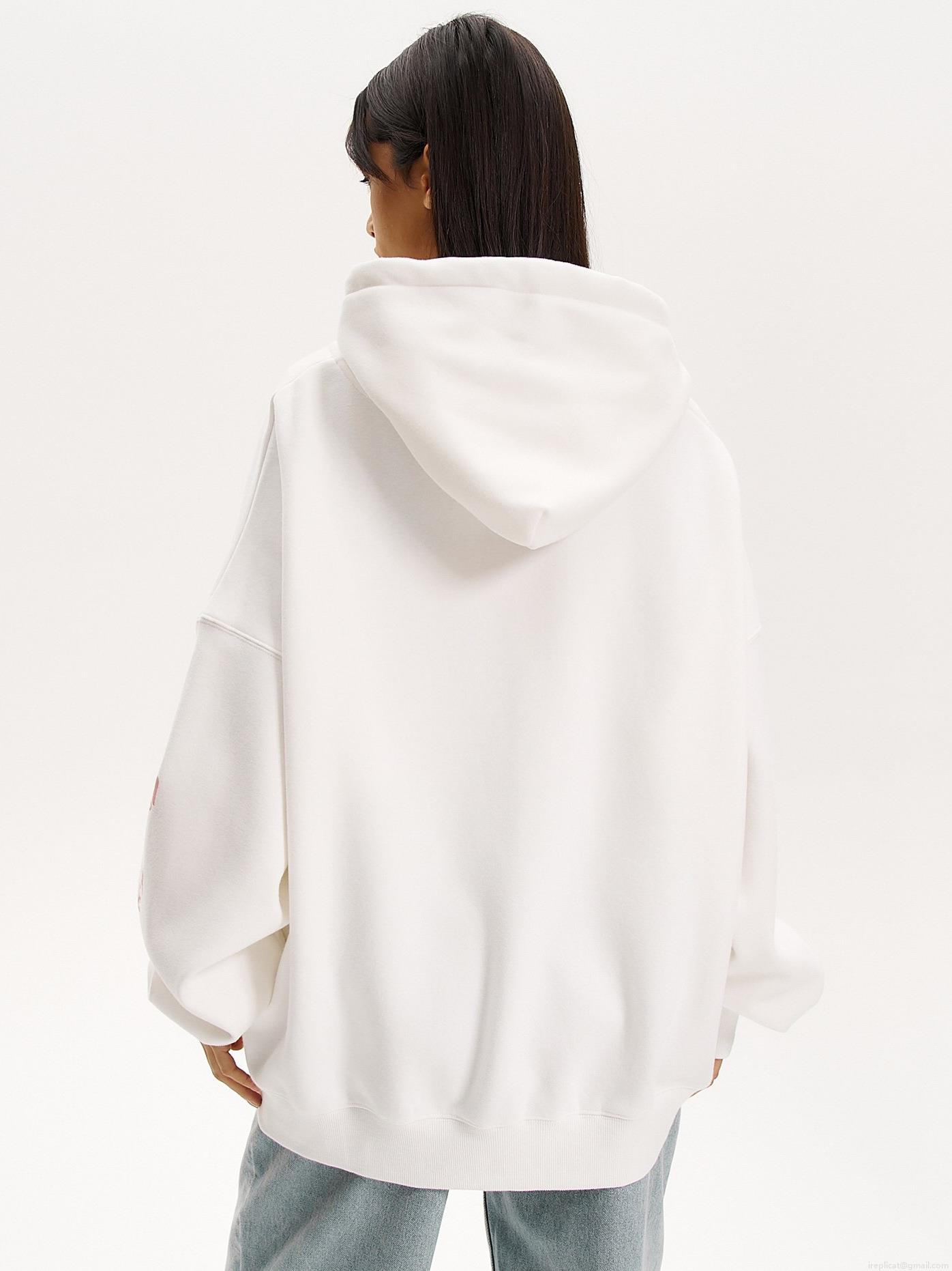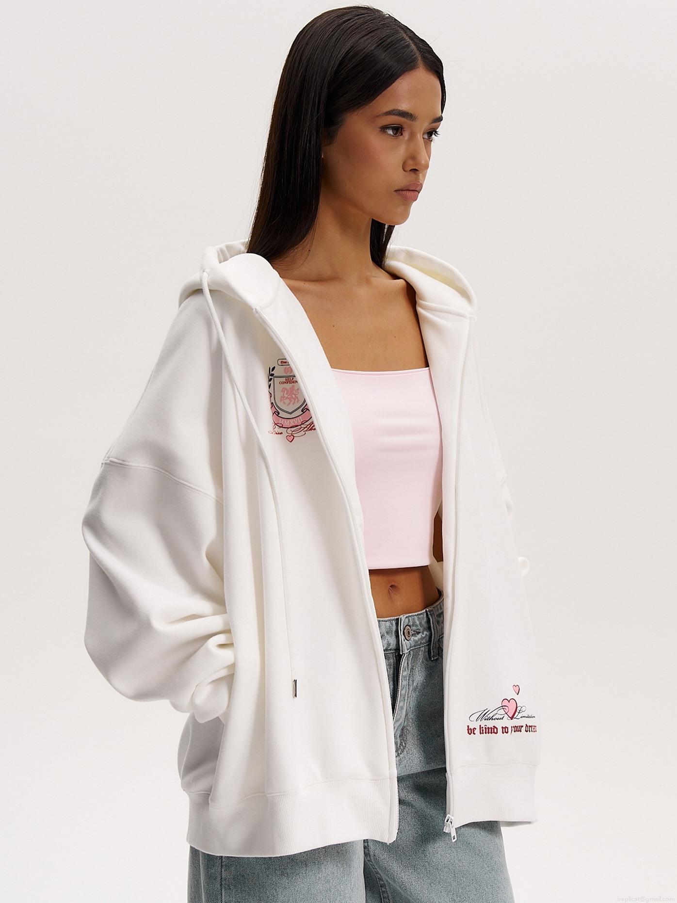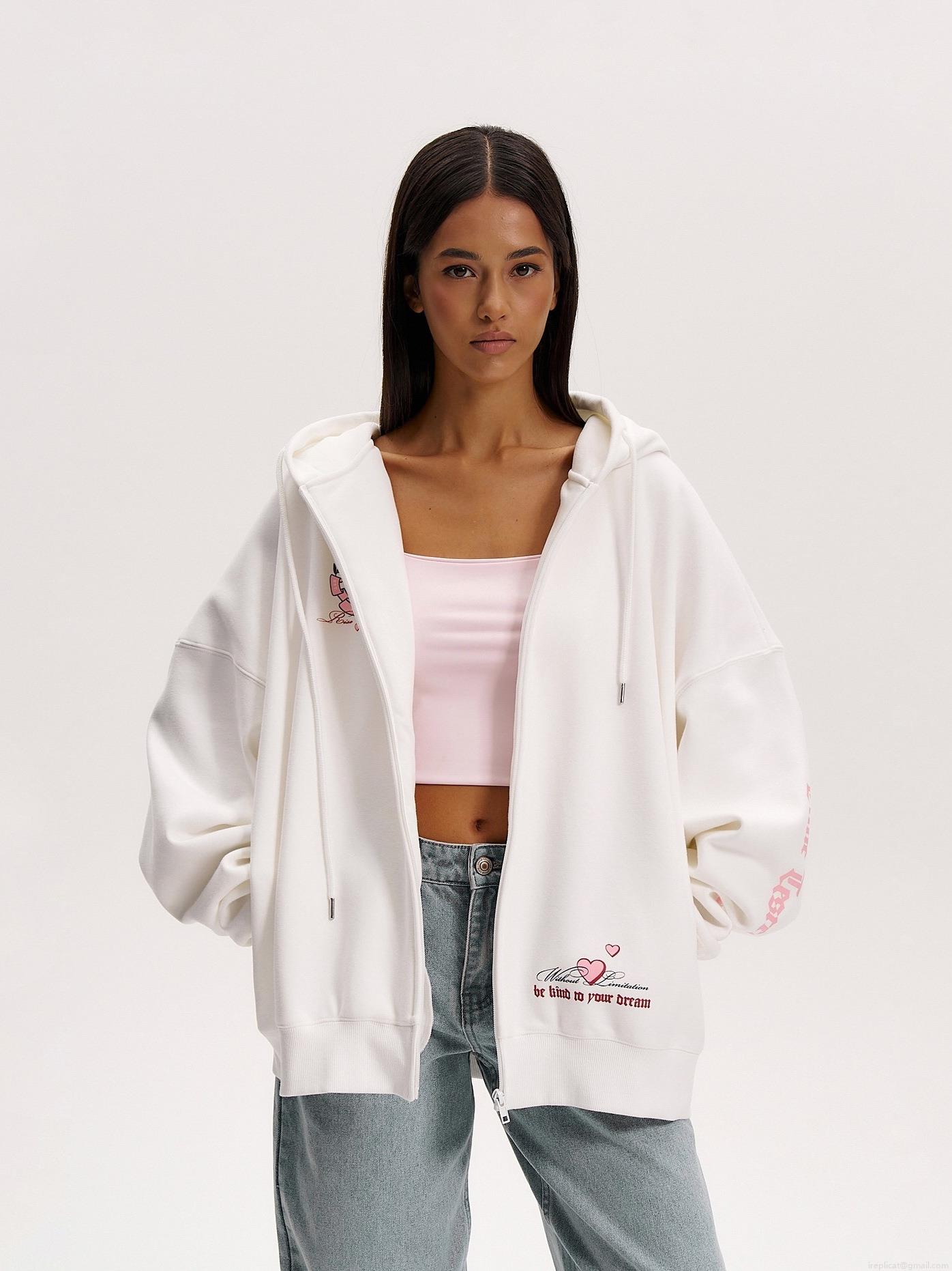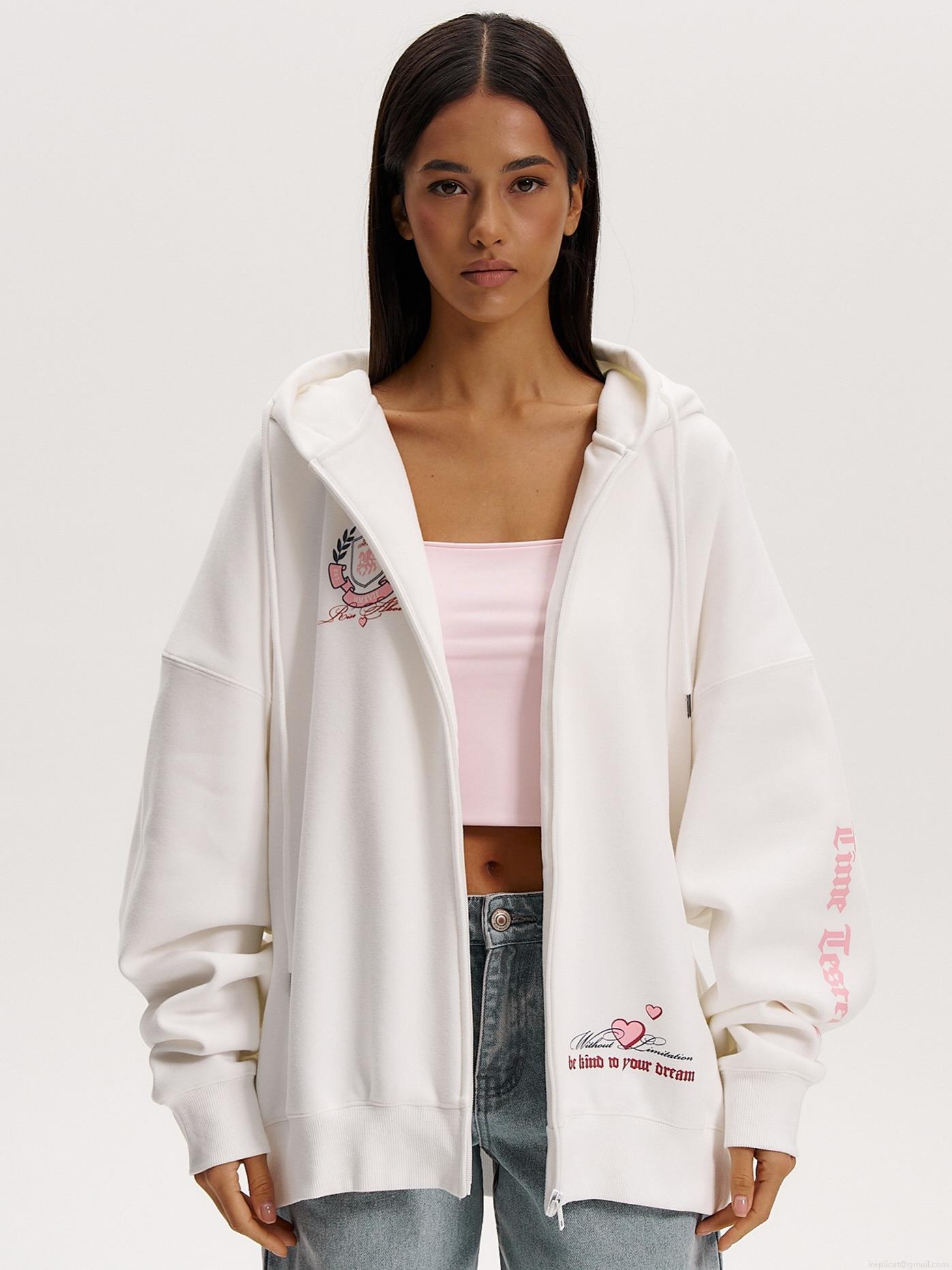• Women's Zip Up Hoodie 100% Cotton Oversized Hooded Sweatshirt Y2K Graphic Printed Jacket Loose Fit Long Sleeve Cardigan Casual Streetwear White Sporty Outerwear