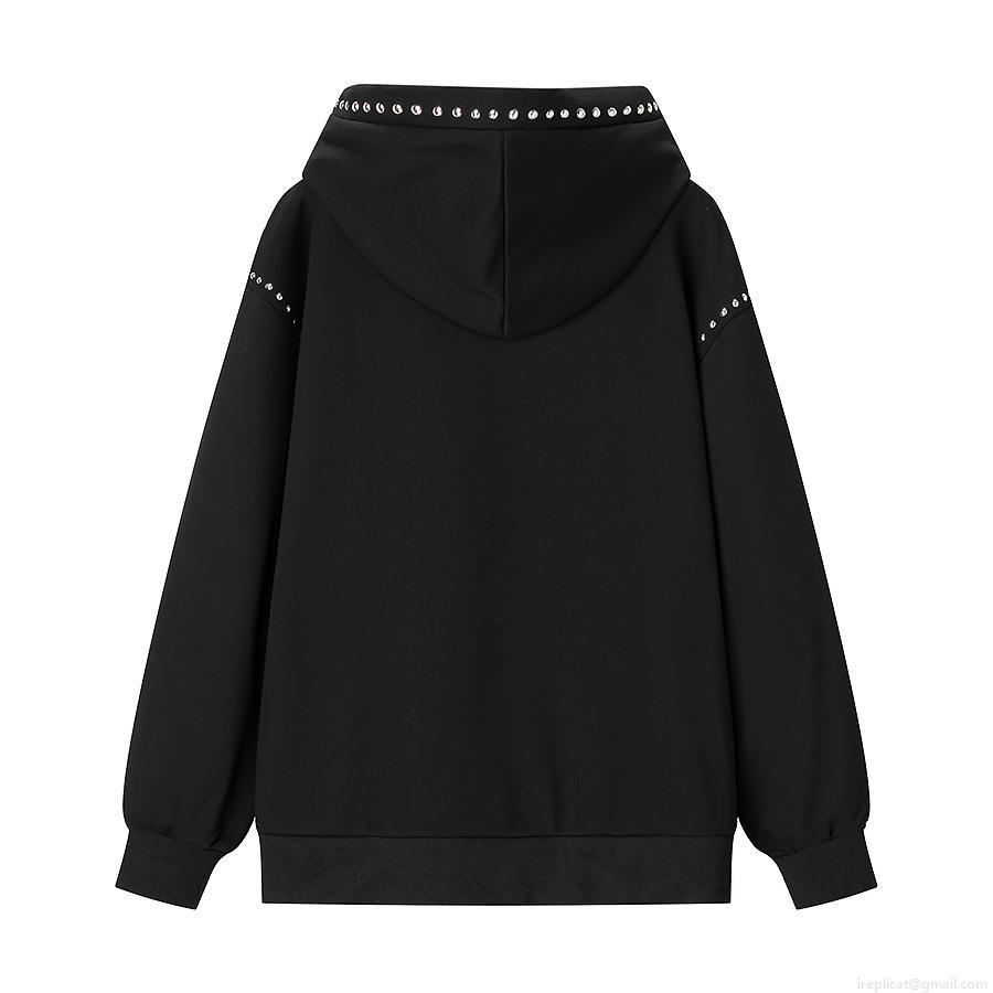 • Women's Casual Oversized Hooded Sweatshirt With Silver Metal Rivets Long Sleeve Acrylic Pullover Streetwear Party Hoodie Tops