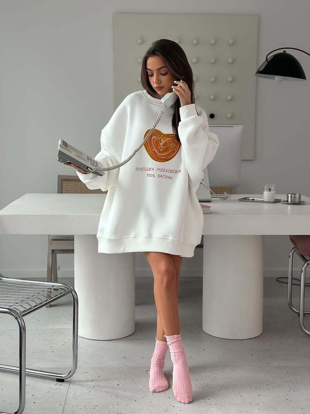 Women's Cotton Sweatshirt Heart Bread Russian Letter Print Oversized Pullover Long Sleeve Crew Neck Casual Loose Streetwear Fashion Top