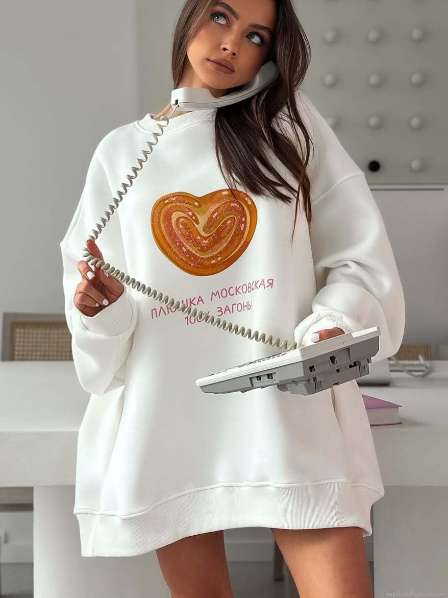 • Women's Cotton Sweatshirt Heart Bread Russian Letter Print Oversized Pullover Long Sleeve Crew Neck Casual Loose Streetwear Fashion Top
