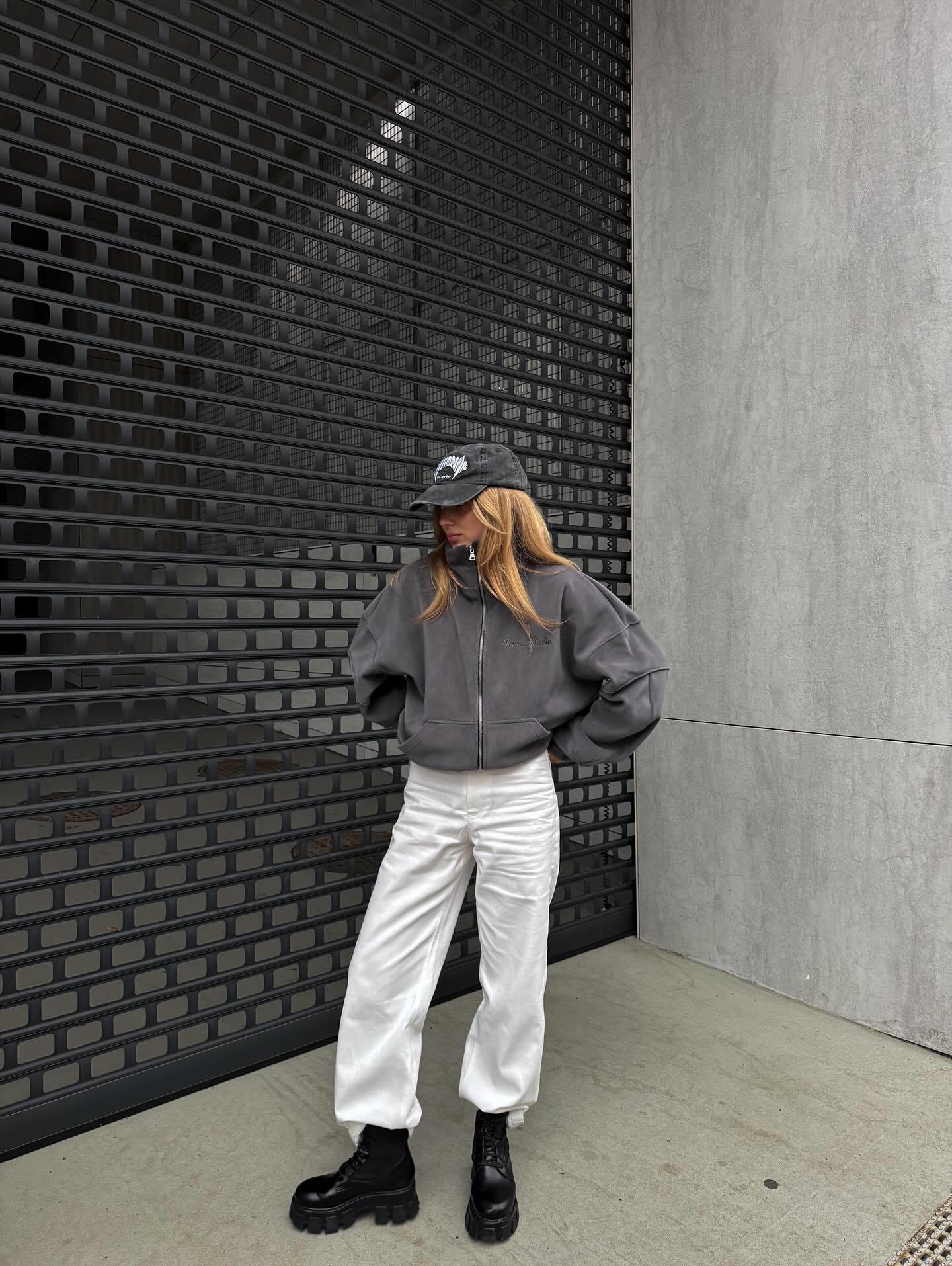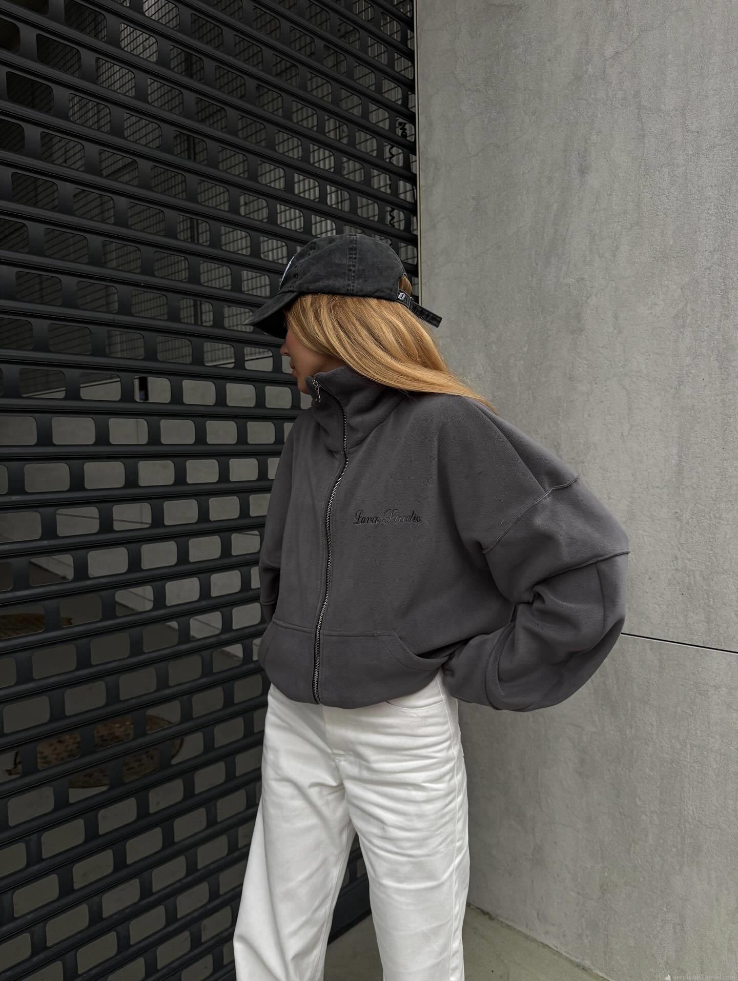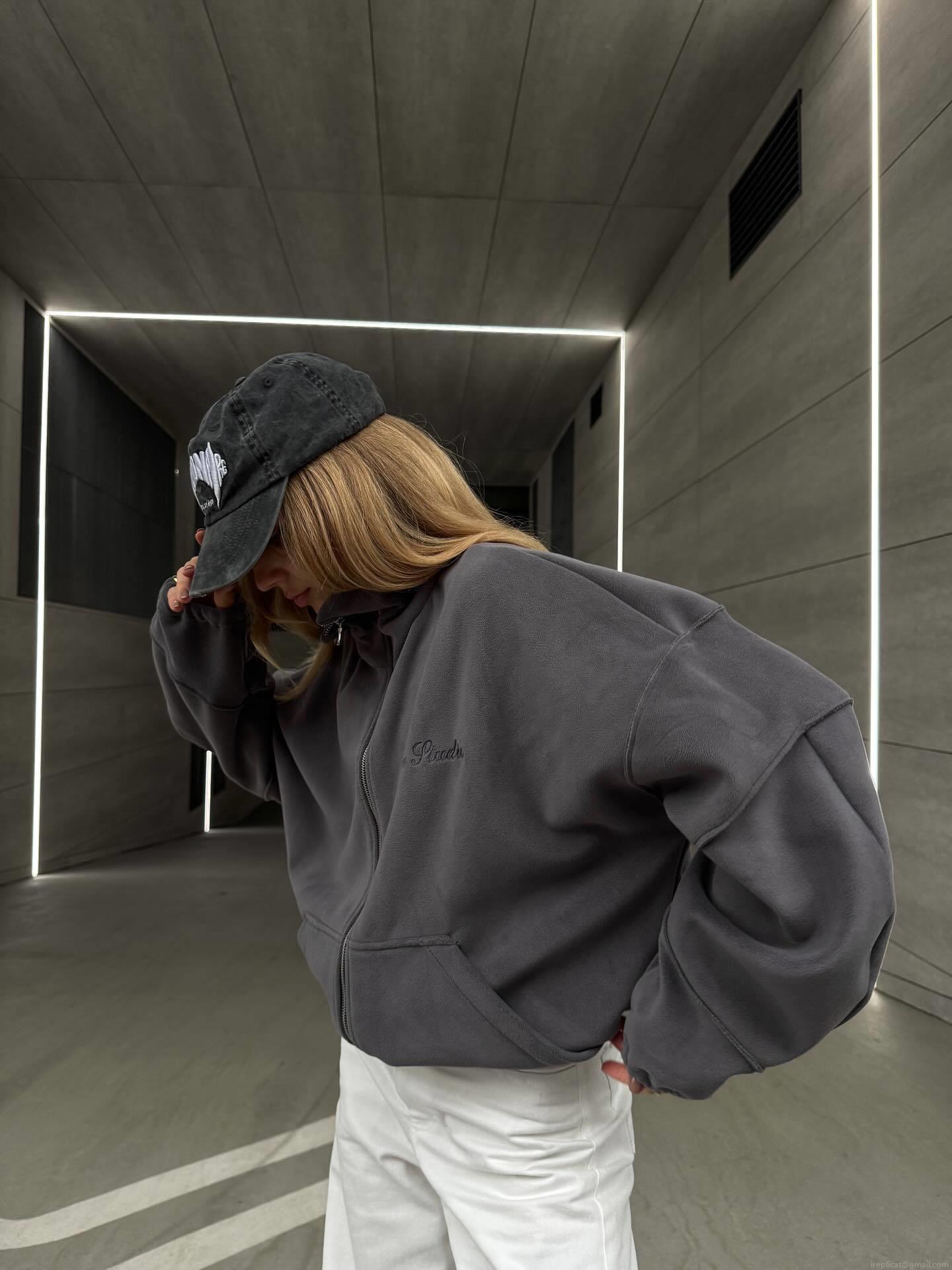 • Women's Loose Polar Fleece Sweatshirt Zipper Stand Collar Jacket Warm Cotton Blend Letter Embroidery Streetwear Long Sleeve Outerwear Top