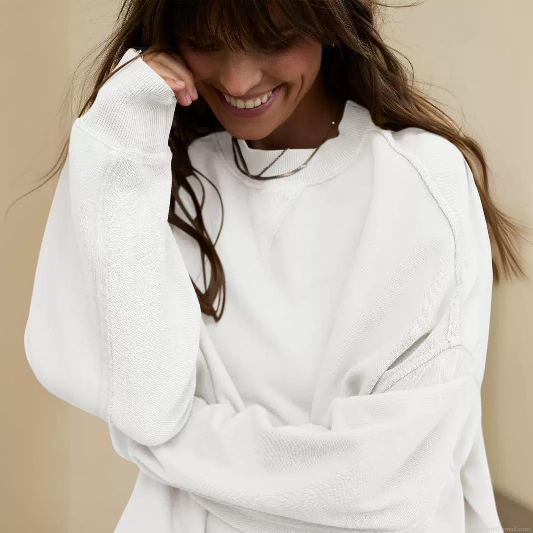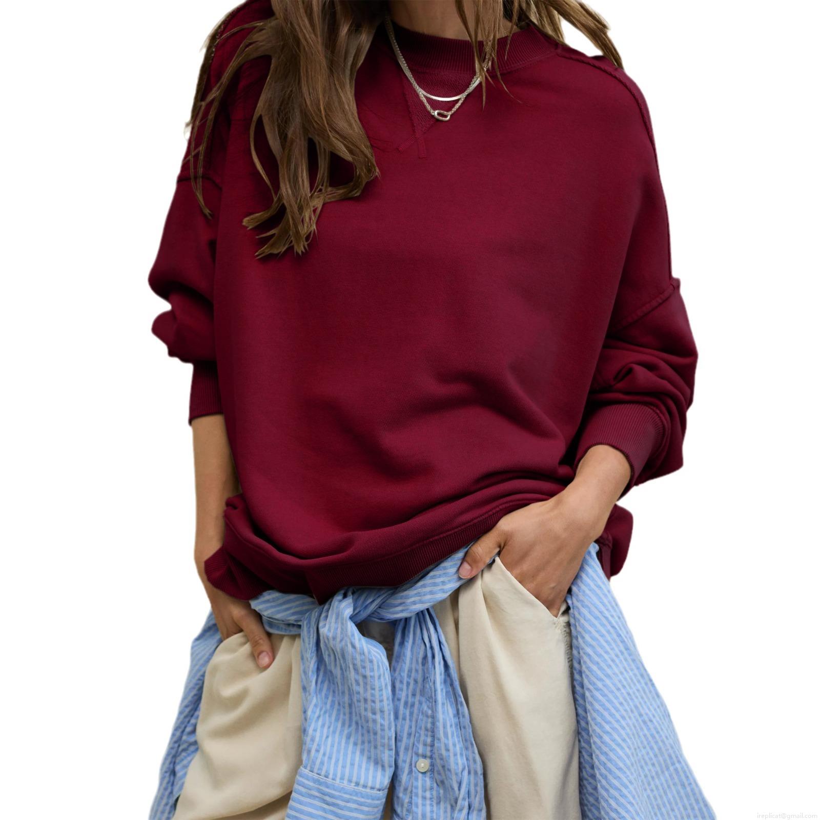 • Women's Oversized Knit Sweatshirt Round Neck Lantern Sleeve Dropped Shoulder Casual Solid Color Polyester Viscose Blend Pullover Top