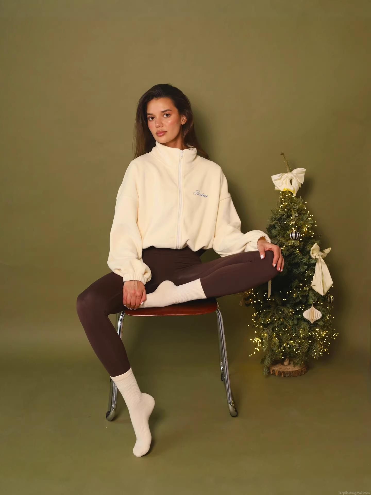 Women's Polar Fleece Zip Up Sweatshirt Letter Embroidery Stand Collar Jacket Autumn Winter Warm Loose Casual Outdoor Outerwear Top For Women