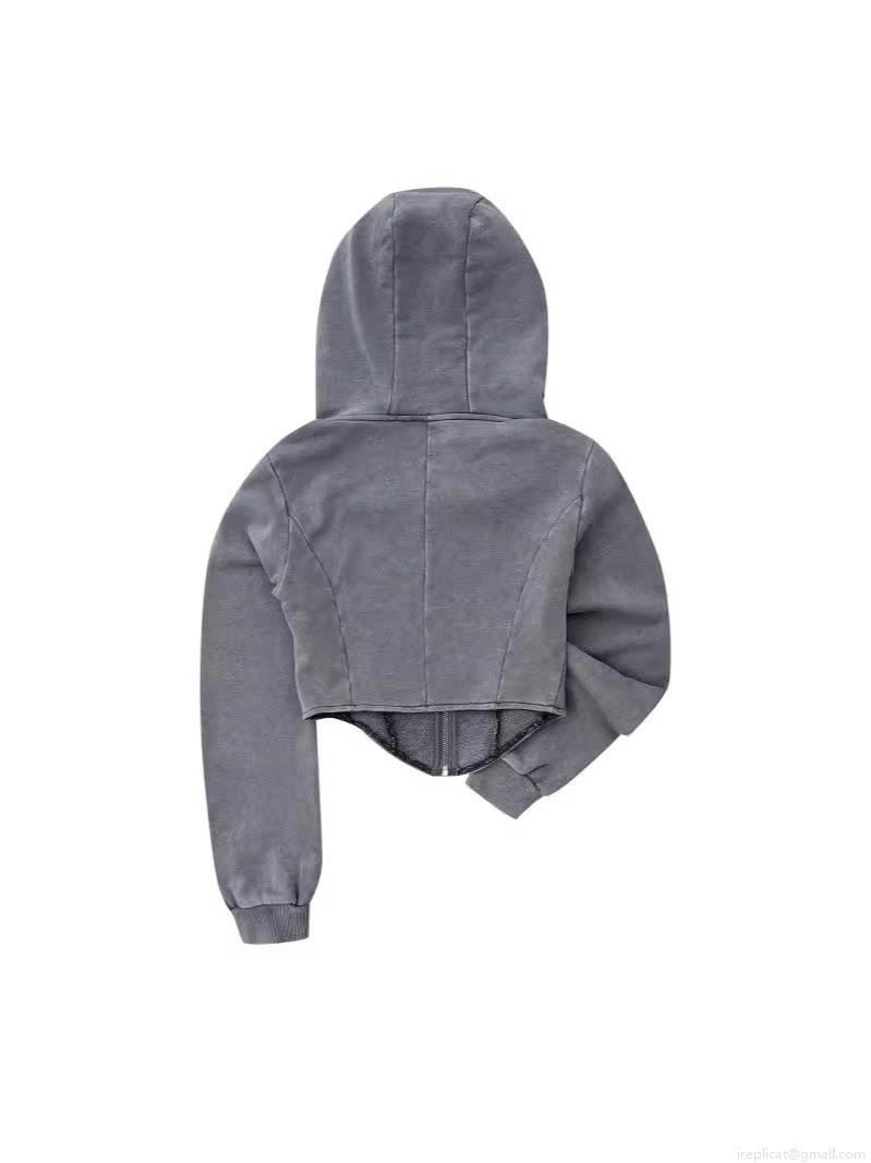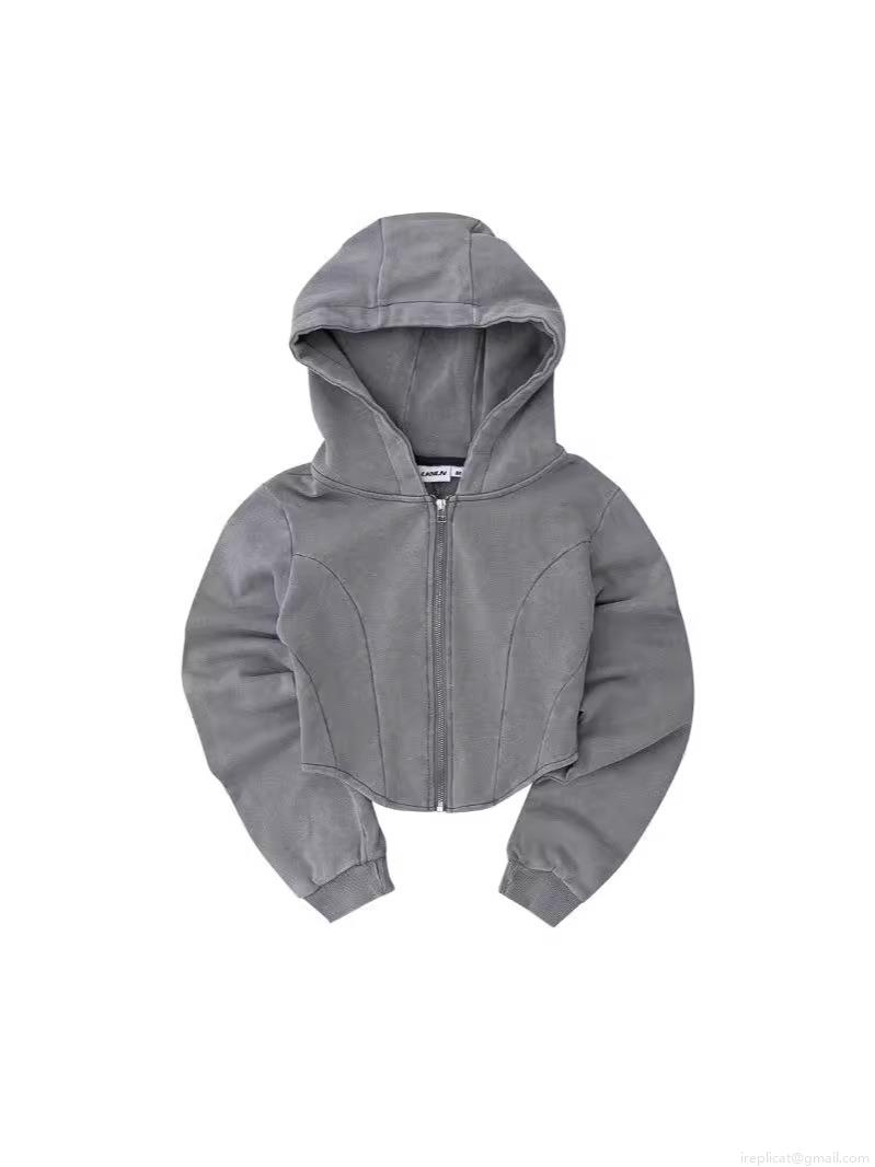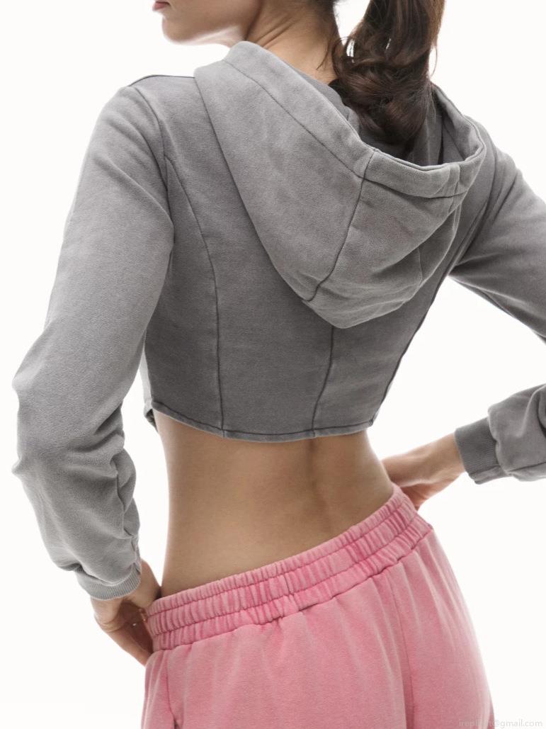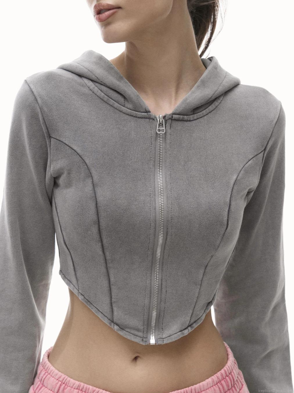 • Women's Sexy Slim Fit Fishbone Short Hoodie Y2K Distressed Zipper Hooded Sweatshirt Cropped Long Sleeve Streetwear Spicy Girl Top Cotton Blend Grey