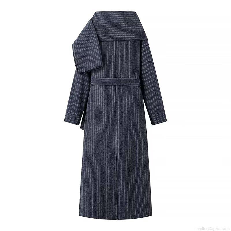 • British Style Women Long Stripe Coat With Scarf Collar 100% Polyester Wool Blend Look Loose Fit Belted Trench Coat For Winter Autumn Fashion