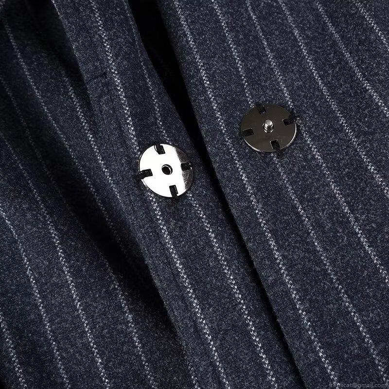 Pinstripes, Belt, Leather Patchwork, Scarf Collar, Silhouette Design, Metal Snap Fastener