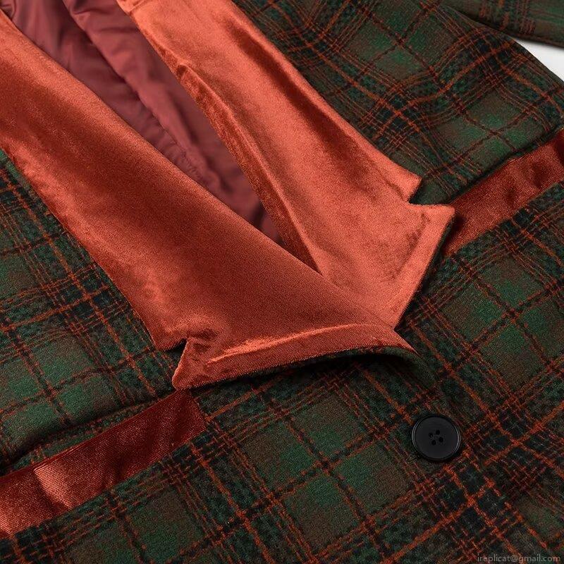 Splice, Checkered Pattern, Single-breasted, Velvet Lapel