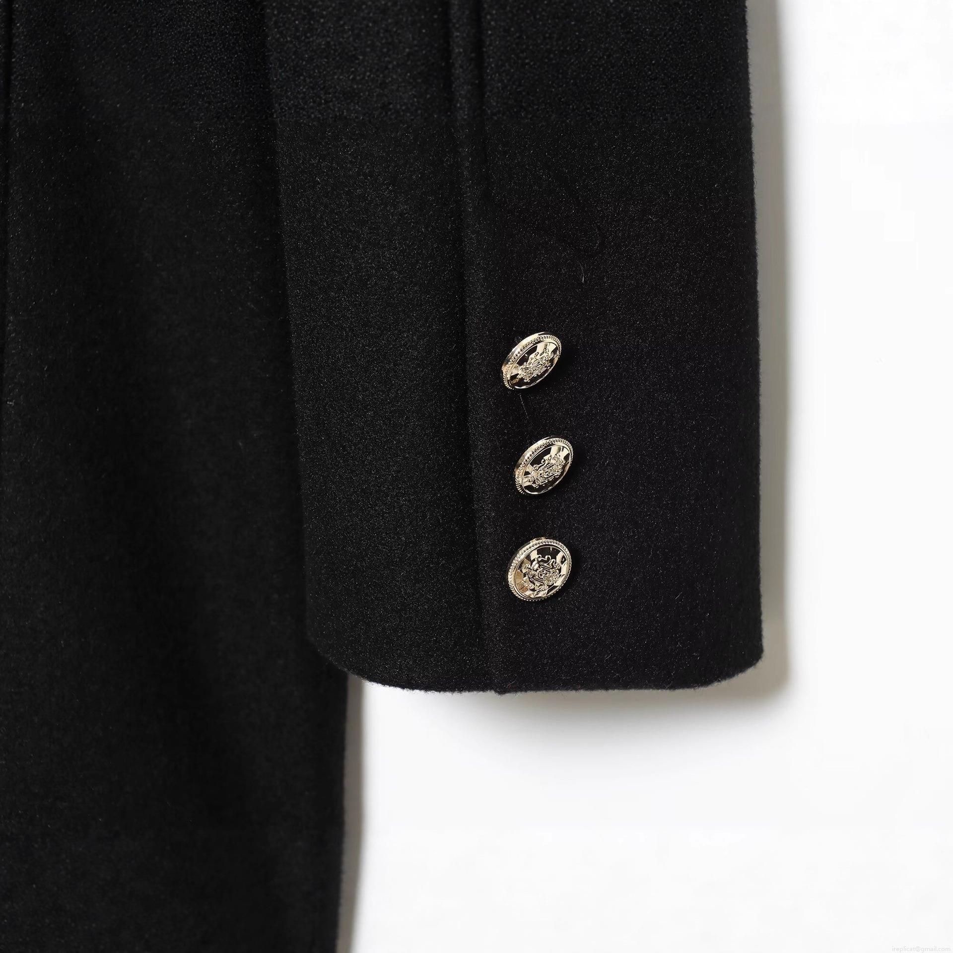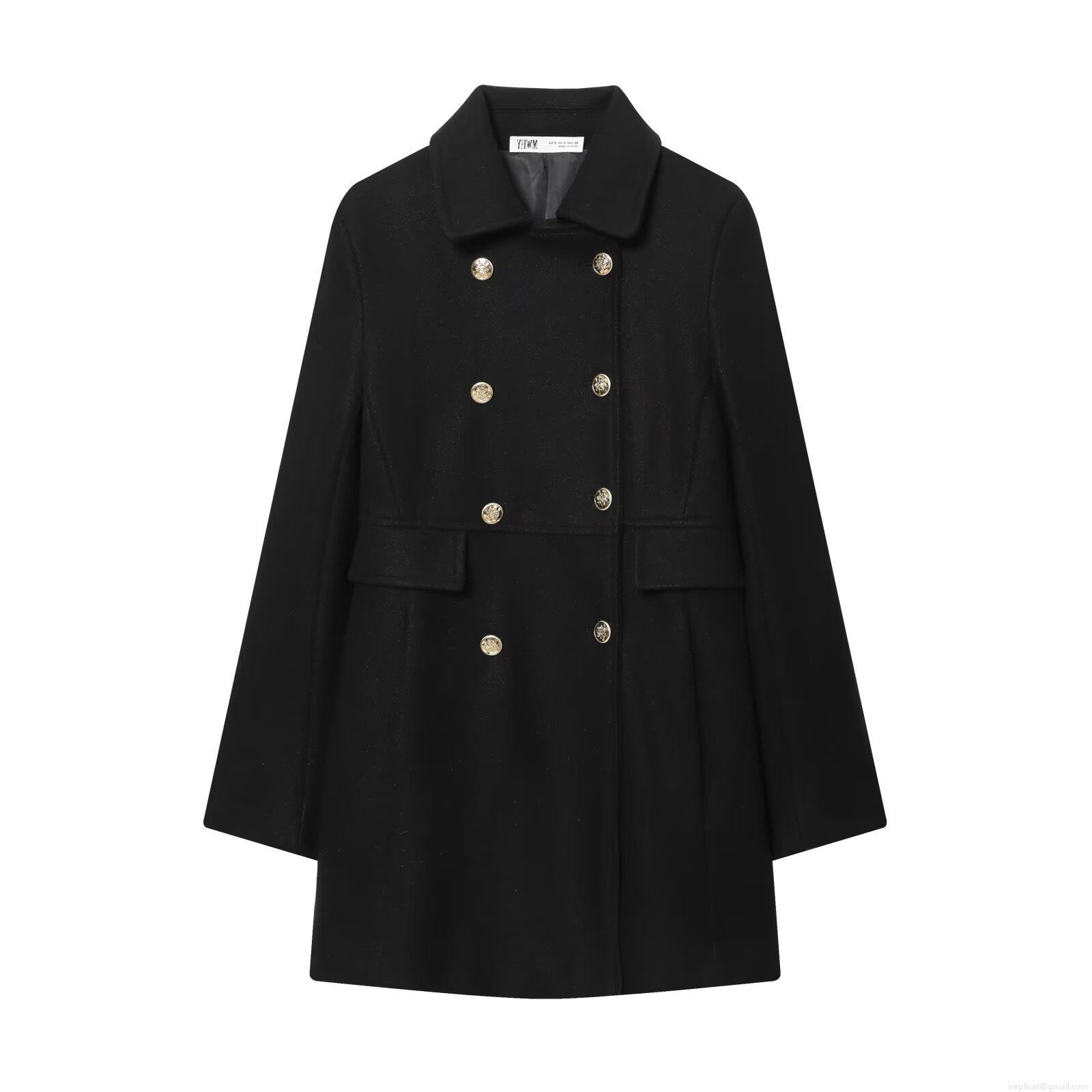 • British Style Women's Double-Breasted Wool Blend Coat Autumn Winter Loose Fit Lapel Long Sleeve Jacket With Crest Metal Buttons Mid-Length Overcoat Commuting Casual Outerwear