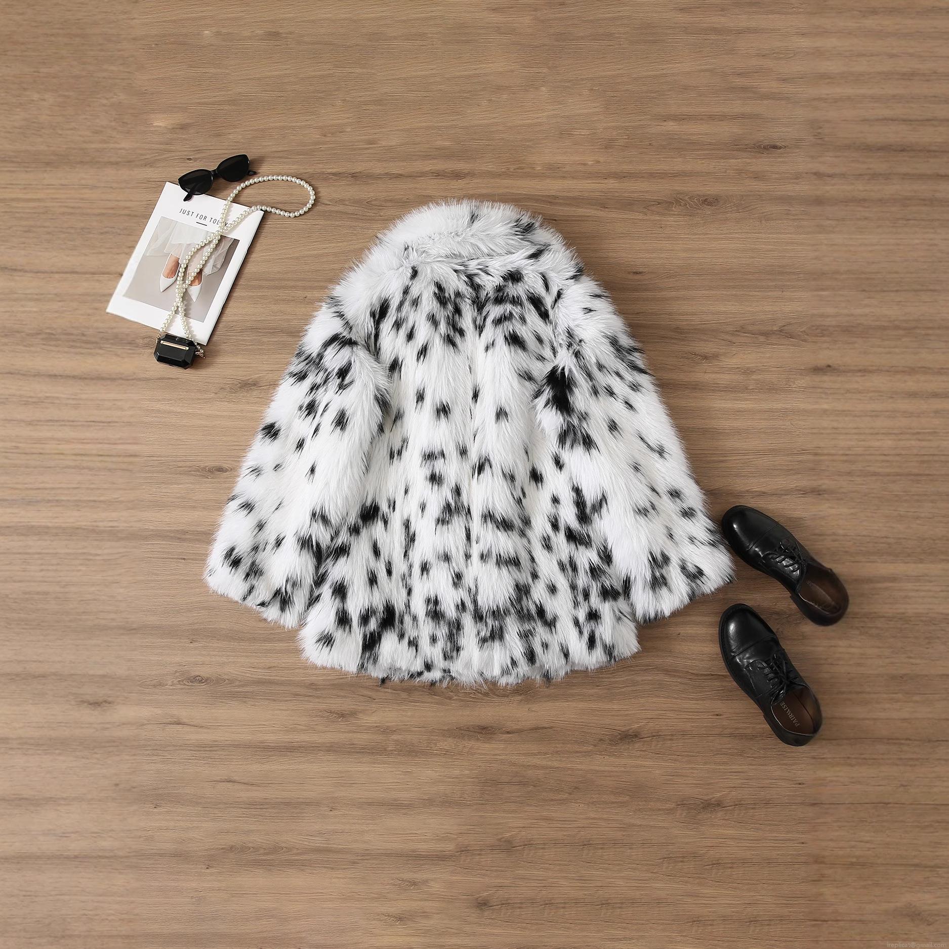 • Elegant Women Faux Fur Coat Black White Spotted Print Thick Plush Jacket Turn Down Collar Lady Style Winter Warm Short Overcoat Outwear