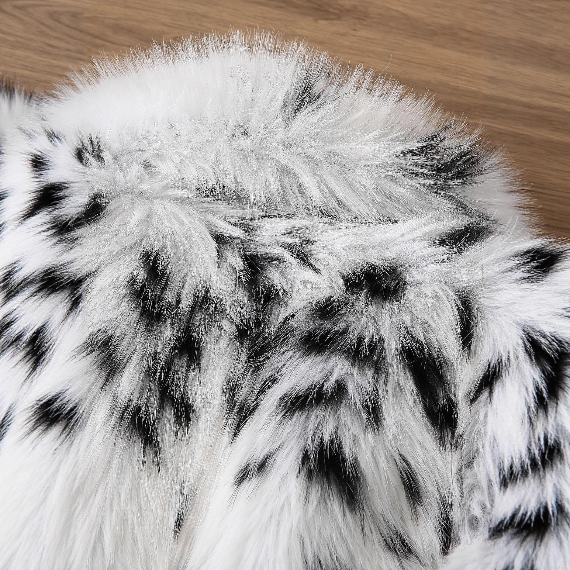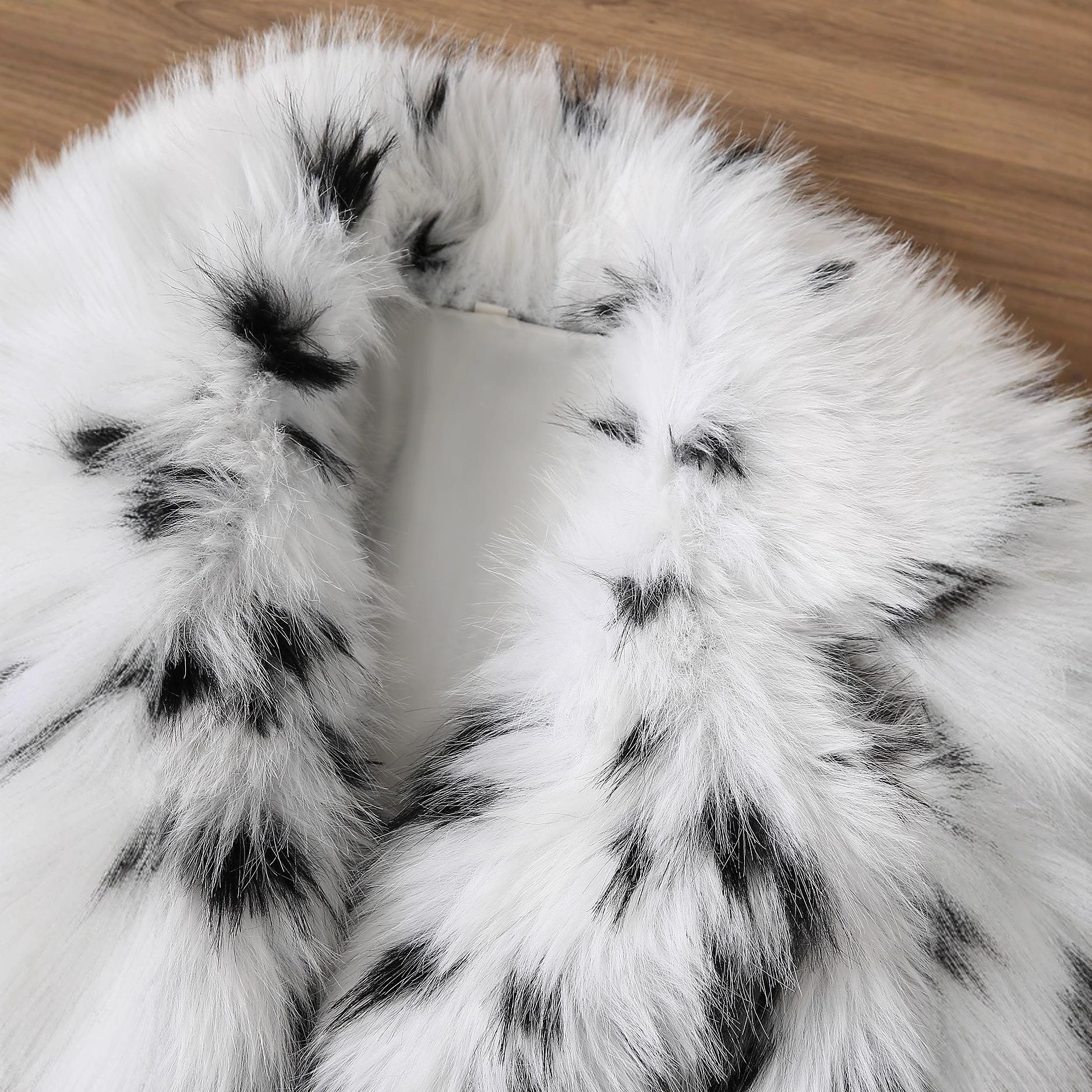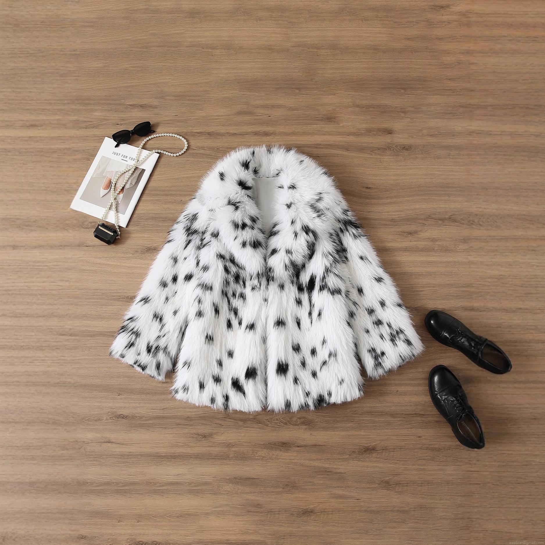 Elegant Women Faux Fur Coat Black White Spotted Print Thick Plush Jacket Turn Down Collar Lady Style Winter Warm Short Overcoat Outwear
